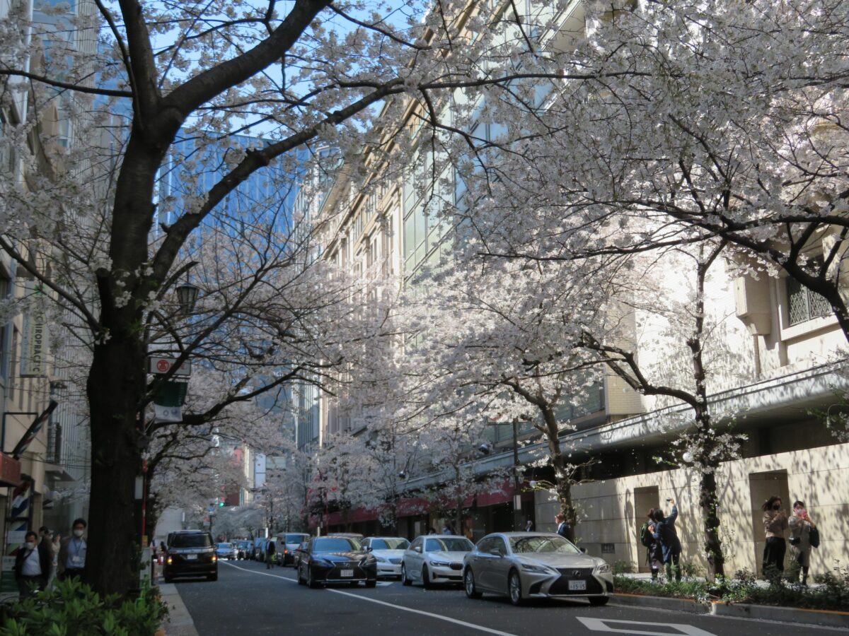 首都東京と全国各地を繋ぐのは東京駅でしょう。新幹線をはじめ数多くの路線のプラットホームが並んでいます。駅舎の玄関として丸の内と八重洲の出入口をもち、周辺にビジネス街が広がる丸の内側は1914年の創建当時の姿に復元されました。赤レンガの外壁にドーム天井が設けられアート作品のようです。逆の八重洲側は日本橋や銀座などの商店街に繋がります。八重洲北口から北東に数百メートルのところから、八重洲さくら通りが日本橋に向かってのびます。通り沿いには桜が植樹され、例年3月下旬から4月上旬にかけて花を咲かせ周囲に春の訪れを知らせてくれます。2021年は気候の影響から3月25日前後に見頃となりました。