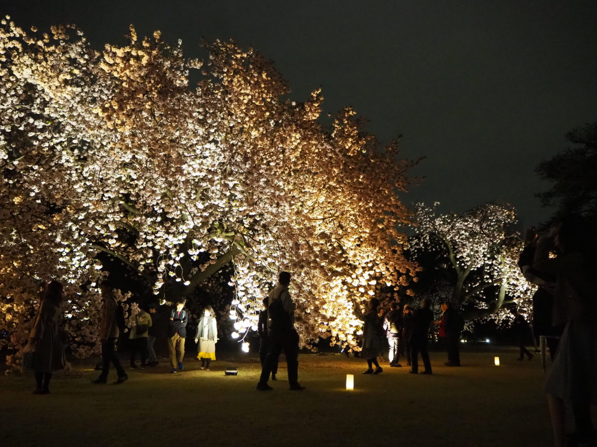 新宿御苑の「八重桜ライトアップ」は18日(木)まで開催!仕事帰りに、東京の真ん中で日本の春を感じてみませんか?