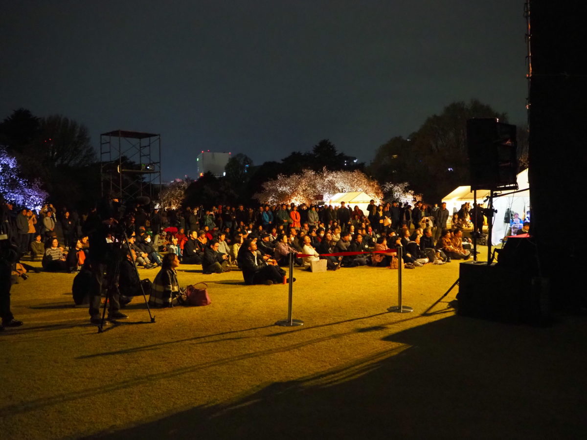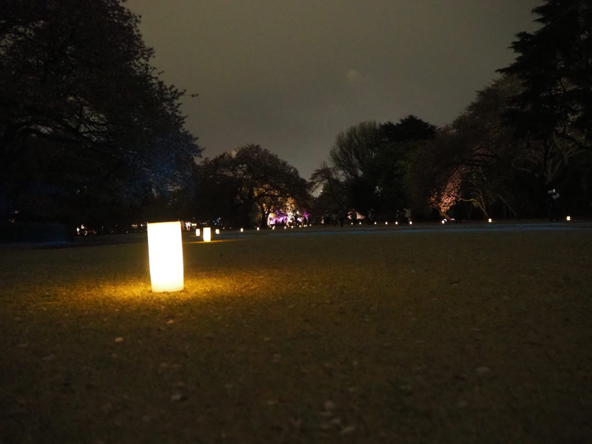 夜桜ライトアップでは、入り口は新宿門の一箇所となっております。