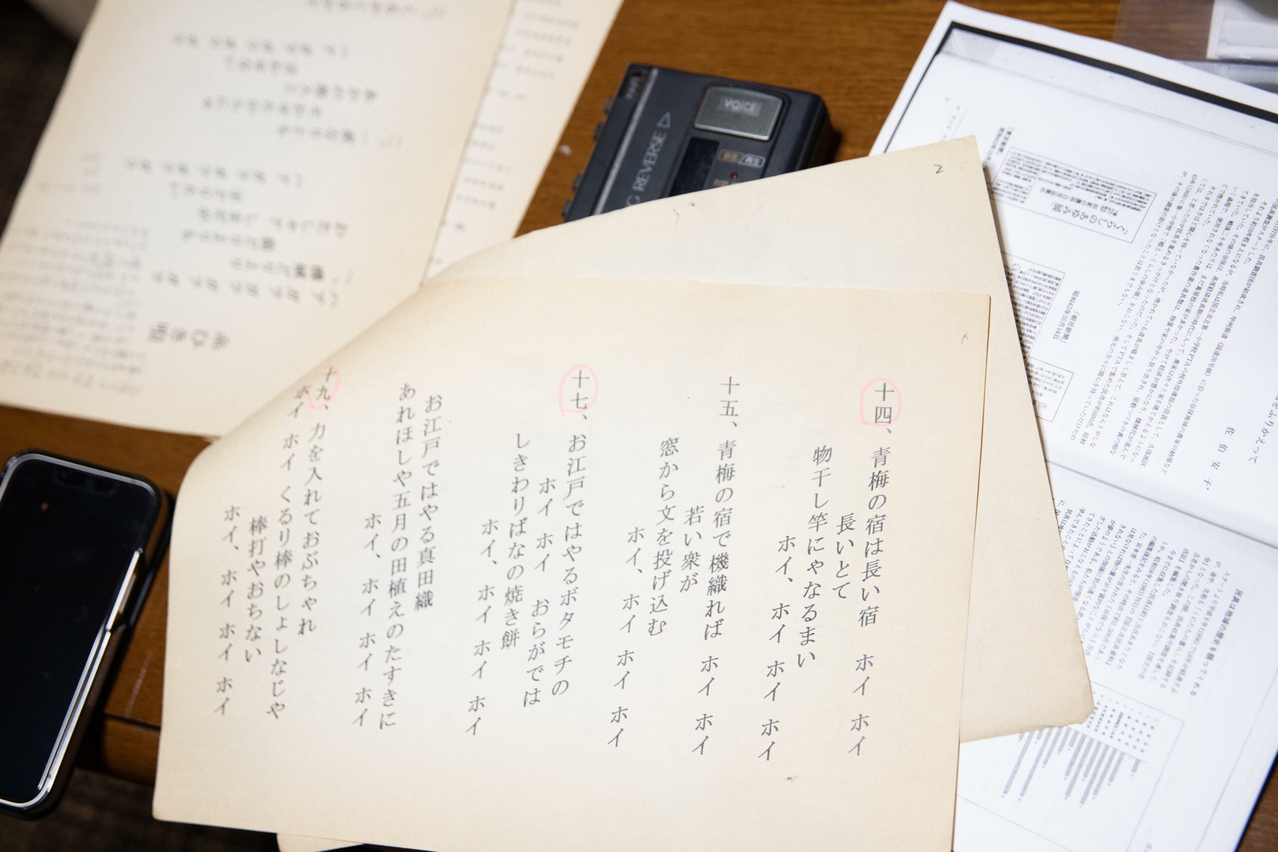 東京の民謡について調べようとアプローチしていたつもりが、思いもかけず、時代の転換期に市井の人々が圧倒的な情熱をもって地域の古い暮らしを調査・記録・伝承していたという事実に触れることになった今回の取材。話を聞きながら、安子さんたちの活動が消えゆく古い文化とその担い手たちを、ある意味では見届けるような役割を担ったのではないかと感じました。