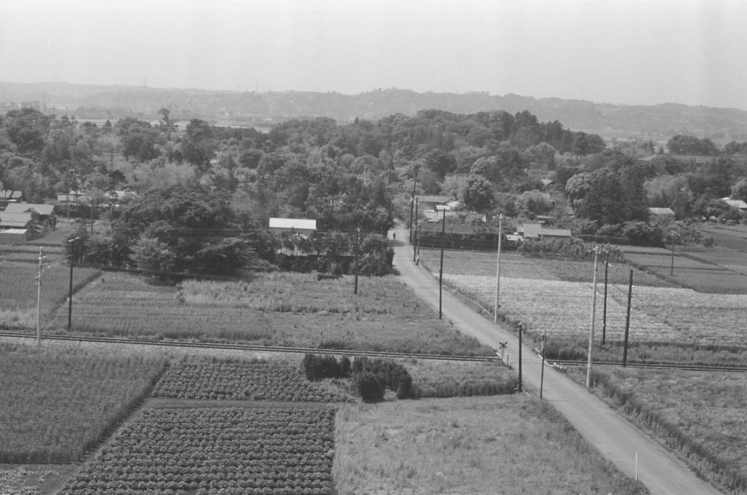 町役場火の見櫓から南武線と城山(1959年頃) 提供:くにたち郷土文化館