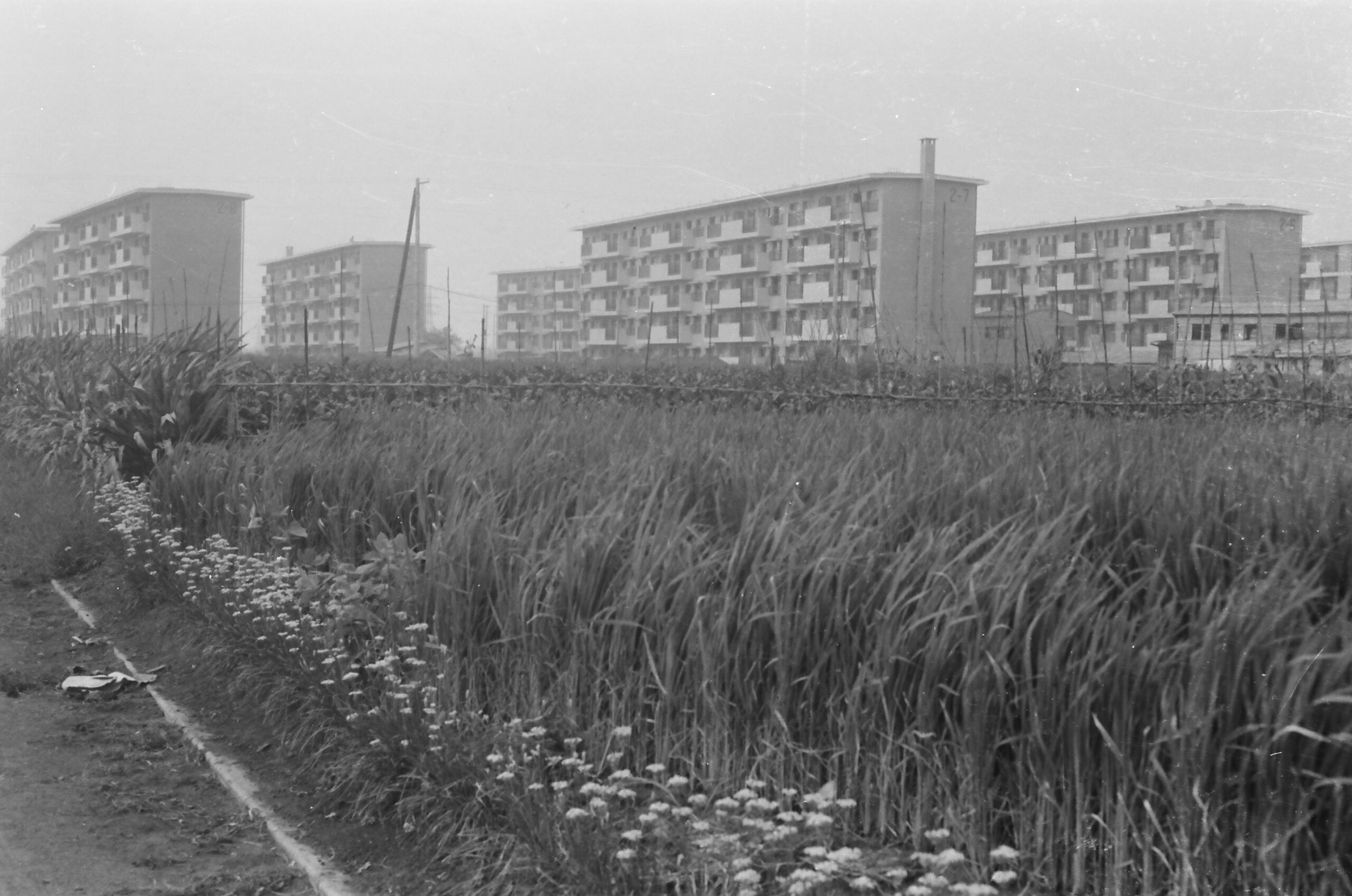 そんなのどかな田園風景にも都市化の波が押し寄せてきました。くにたちの歴史編纂委員会 編『くにたちの歴史』によると、戦後、地方疎開者や復員兵の帰還などではじまった人口増加は、高度経済成長とともに爆発。国立市の世帯数の偏移を見ると、終戦の1945(昭和20)年では1,319戸だったのが、高度経済成長期終焉の契機となったオイルショック(1973年)から2年後の1975(昭和50)年には23,245戸と大幅に拡大しています。その中でも重要な変化となったのは、1965(昭和40)年秋に完成した富士見台団地の登場です。