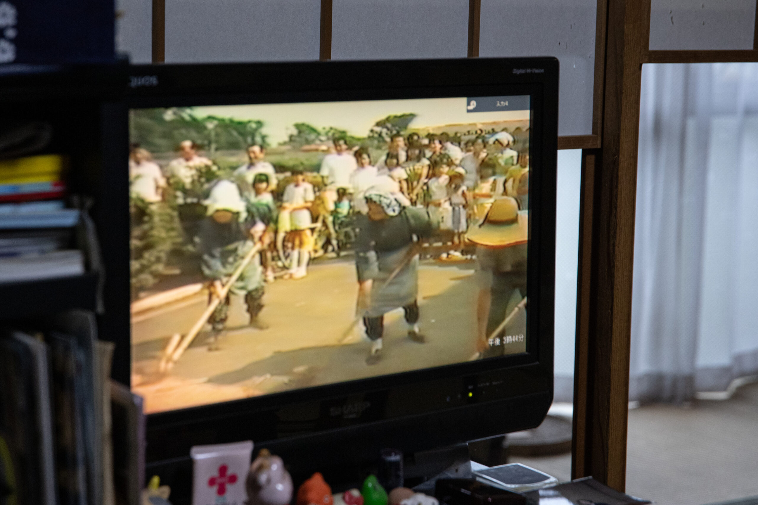 棒打ち歌の再現を記録したビデオがくにたち郷土文化館に保管されている 撮影:渡辺 葉