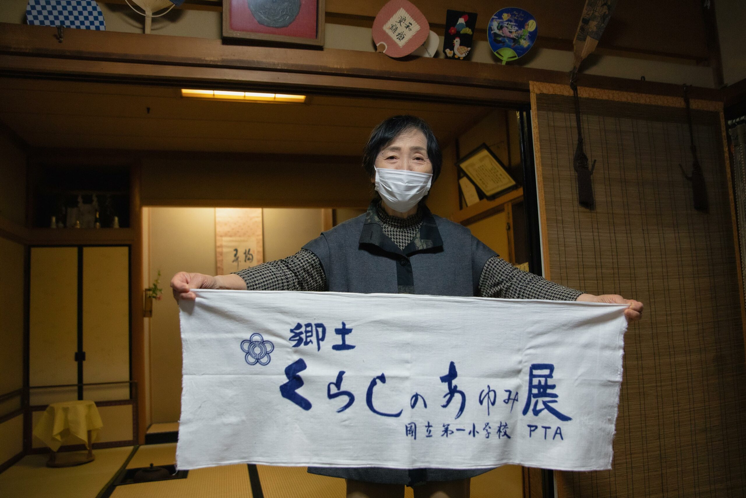 佐伯安子さん宅に保管されていた「郷土 くらしのあゆみ展の手ぬぐい」 撮影:渡辺 葉