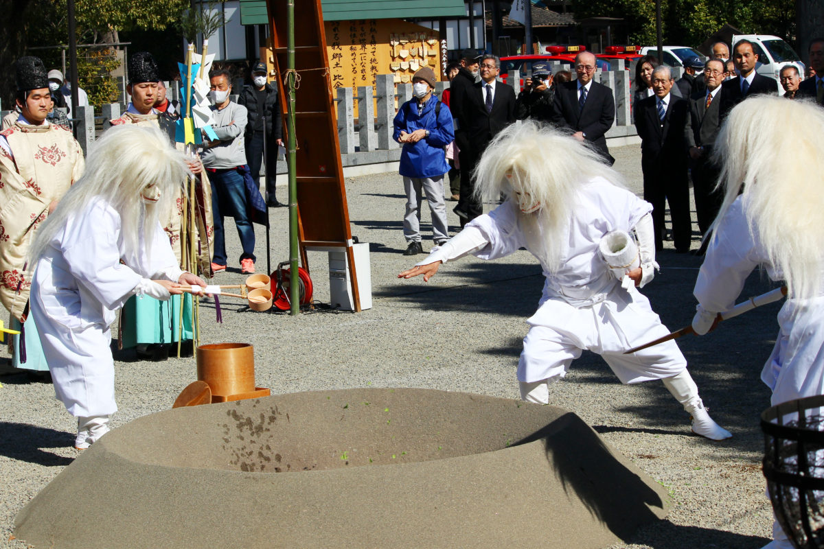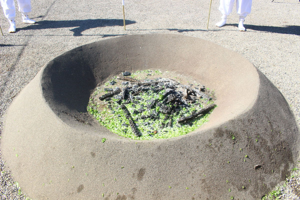 続いて火伏を執り行う砂でつくられた炉へもお祓いを。