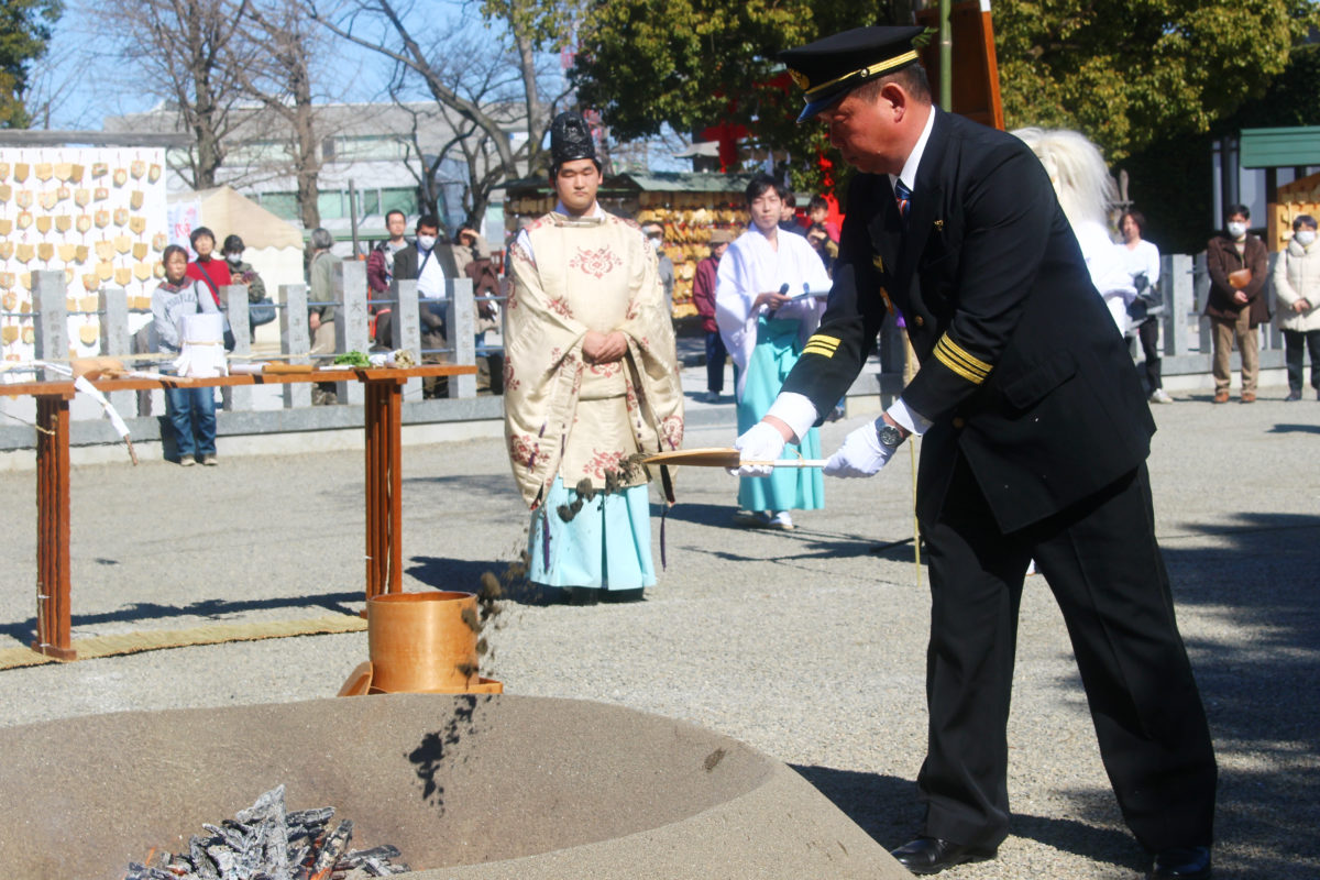 次は地元の消防署長による火伏。今度は砂をかけて火を消していきます!