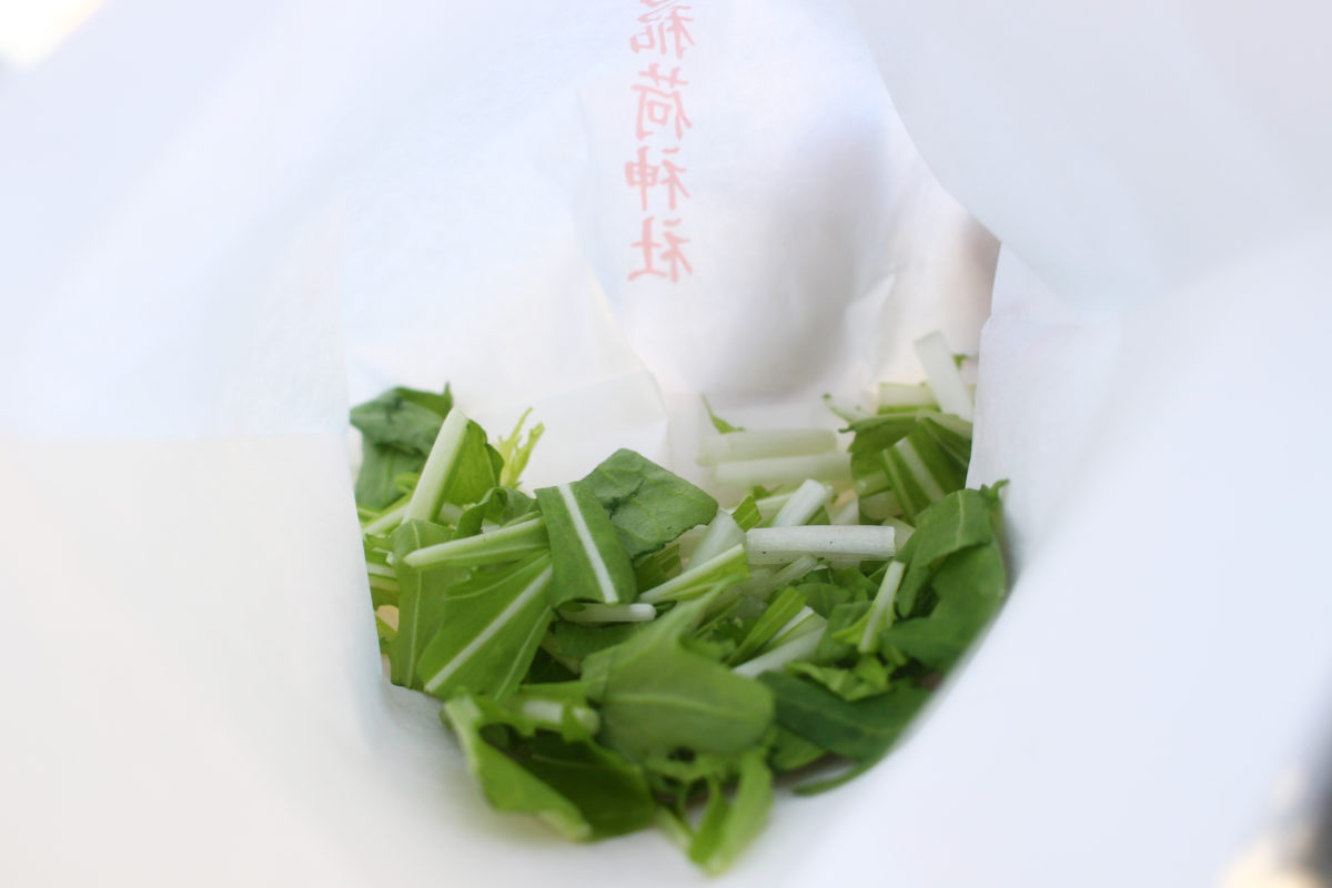 参拝客が火伏に使用するのは、火伏具と呼ばれるこの青菜!境内で100円で授与しているので、ぜひゲットして火伏に参加してみてください!