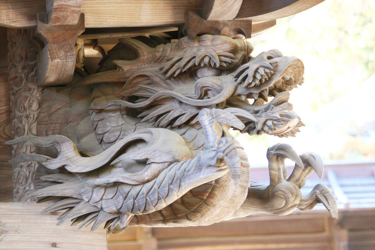 早速社殿の下部には見事な龍がいました!この龍には、火除けの祈りが込められているんだとか。
