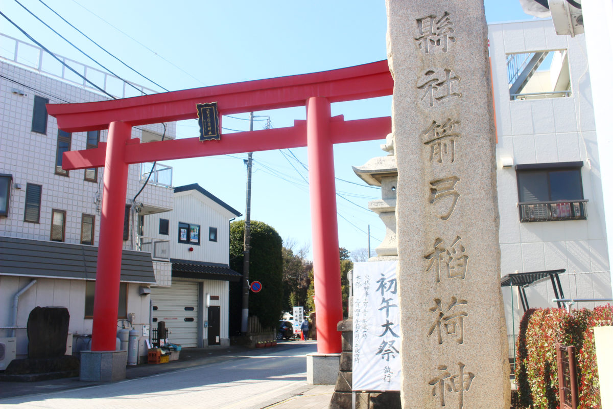 東松山駅西口から、徒歩3分程で着くことができる箭弓稲荷神社。境内への入り口では、大きな鳥居が出迎えてくれます!