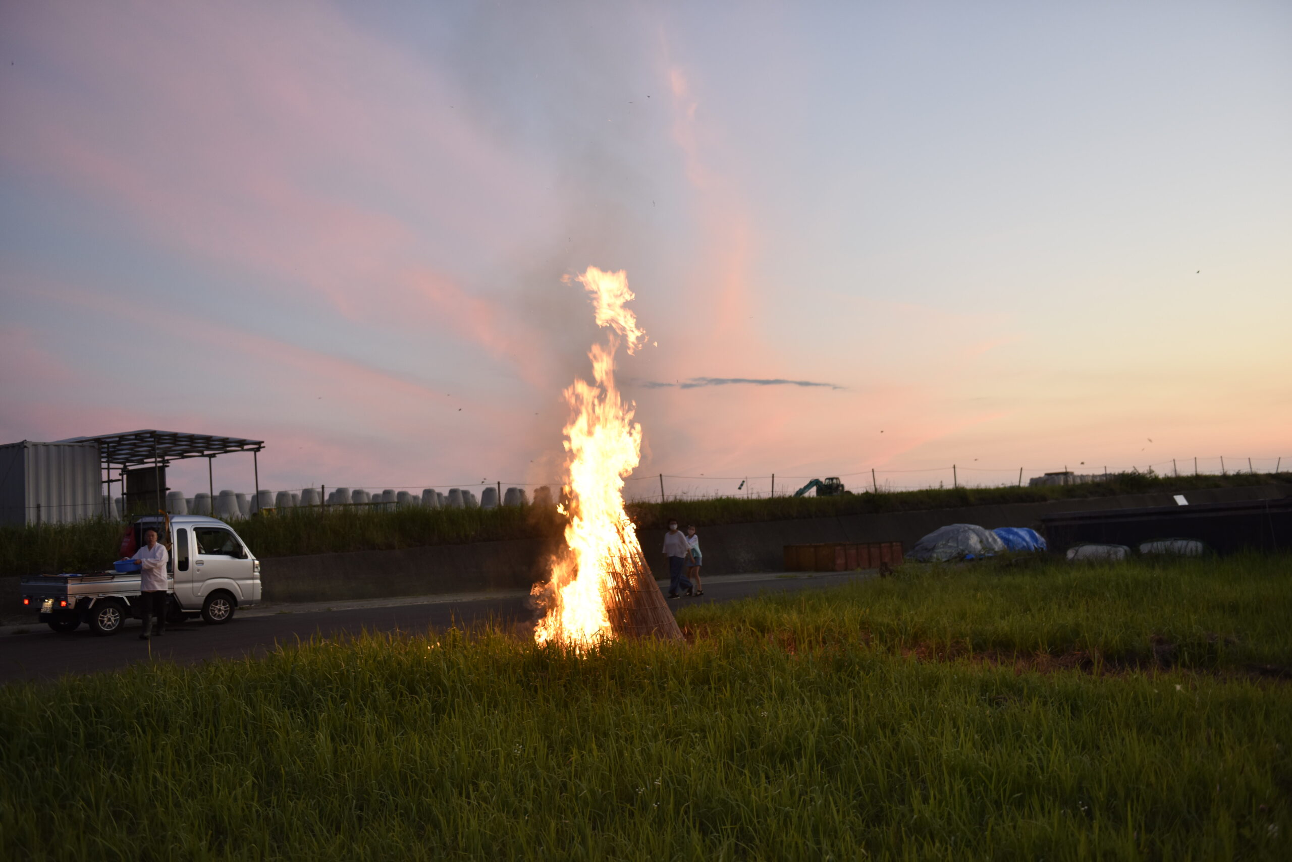 そのためそれほど時間もかからず、西浜にたどり着いた。西浜にたどり着くと、かがり火が焚かれ始めた。夕焼けの薄暗い広場にて、周囲を照らしながらも熱気を放ち、辺りを包み込んでいるようだった。
