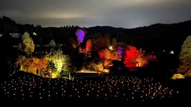棚田・棚池ライトアップは平日も含む10月30日〜11月8日まで毎日実施、11月7日と8日は山花火も実施されます。