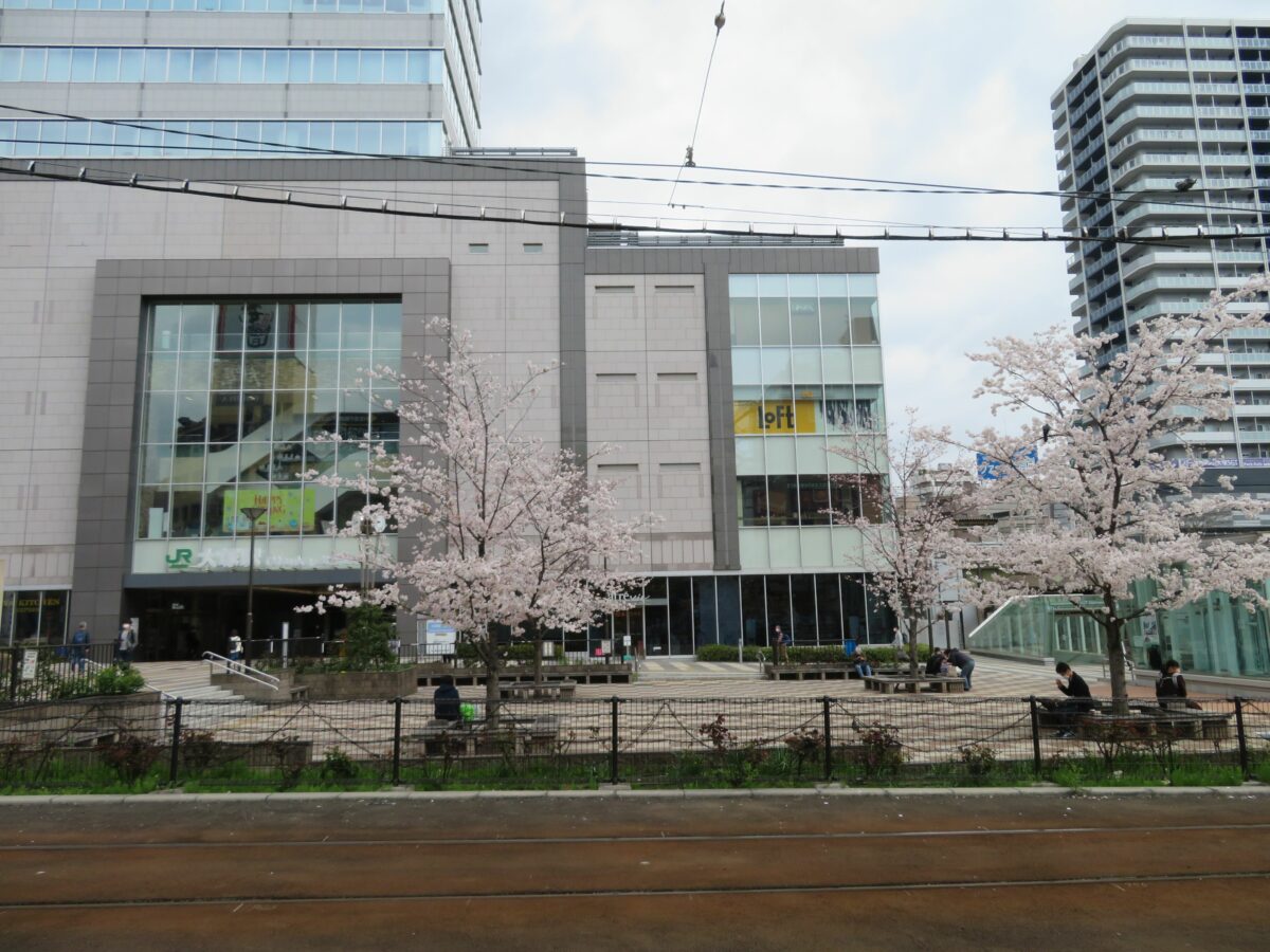 車窓花見を楽しんだ後、大塚駅で下車すると、ホームから南口広場の桜を見ることができます。山手線の大塚駅に隣接して都電荒川線の大塚駅前駅が設置されています。大塚駅前駅から東京さくらトラムに乗車すれば、車窓花見を続けることができます。