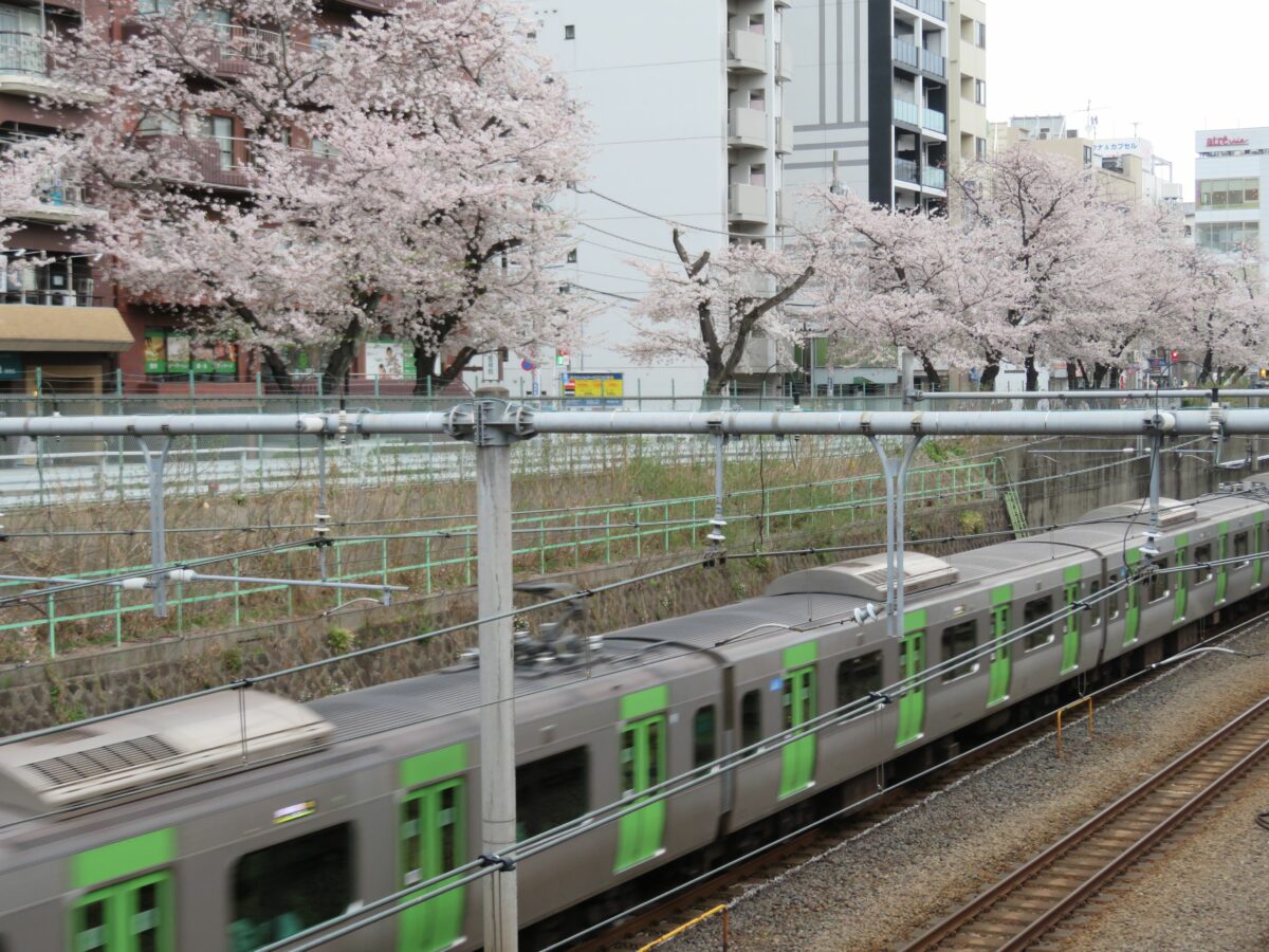 巣鴨駅を出て大塚駅に向かう山手線の内回り電車からは北側に桜並木が続きます。並木は線路から少しせりあがった土手に繋がっているので、目線は少し上げておきたいものです。