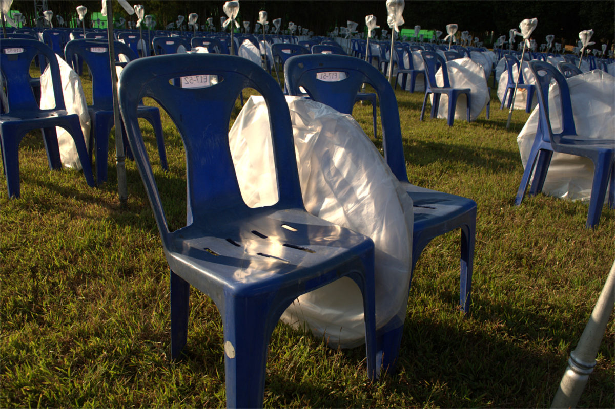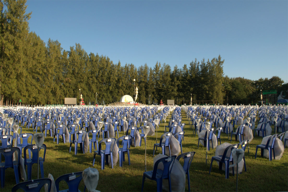 タイ北部の文化に触れたあとは、ランタン打ち上げが行われる広場に移動。整然と並ぶイスには、2脚に1個ずつのランタンが。参加者自らランタンを打ち上げられるのがこのお祭りの魅力のひとつです。