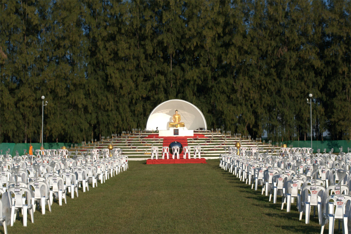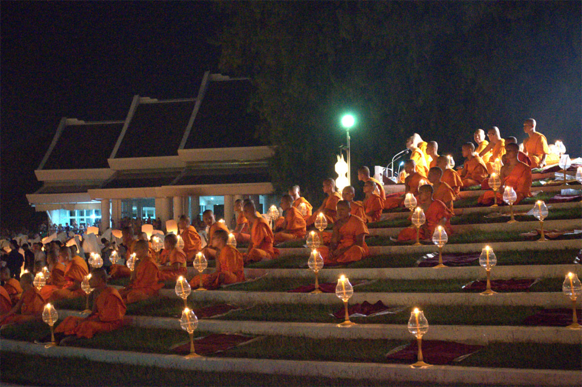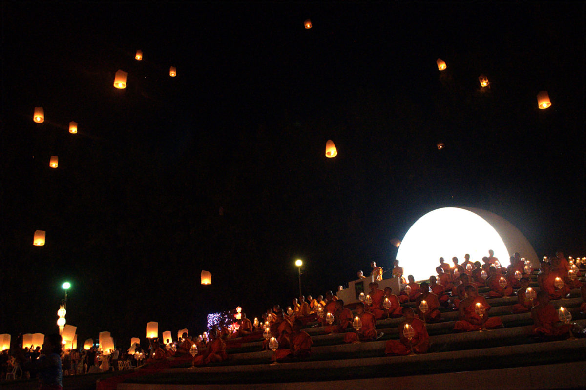 僧侶が整然と並び厳かに儀式が進行され、途中では参加者が瞑想に耽るための時間も設けられています。目を閉じて心も体もリラックスし、会場との一体感を感じたのちいよいよ打ち上げとなります。