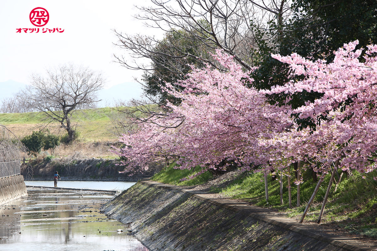 淀緑地まで約1㎞に渡って、京都で一番早い桜・河津桜を楽しめます。
