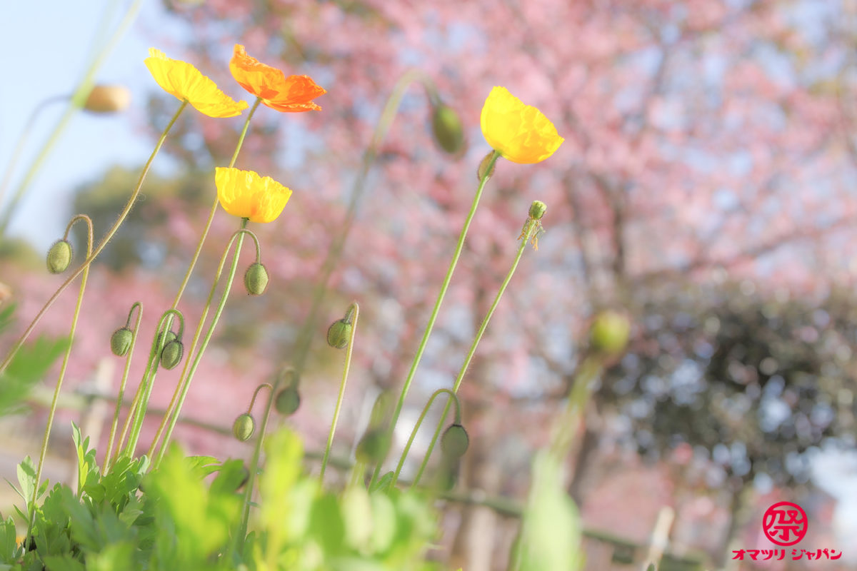 チューリップやポピーなど桜以外のお花も植えられており、桜との撮影も楽しめます。