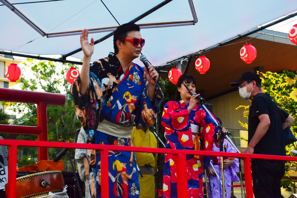 それから、関東圏の盆踊り大会では必ずといっていいほど出てくる大定番「炭坑節」「東京音頭」も。この2曲は踊れる人も多く、みんな楽しく気持ちよく踊っていました。