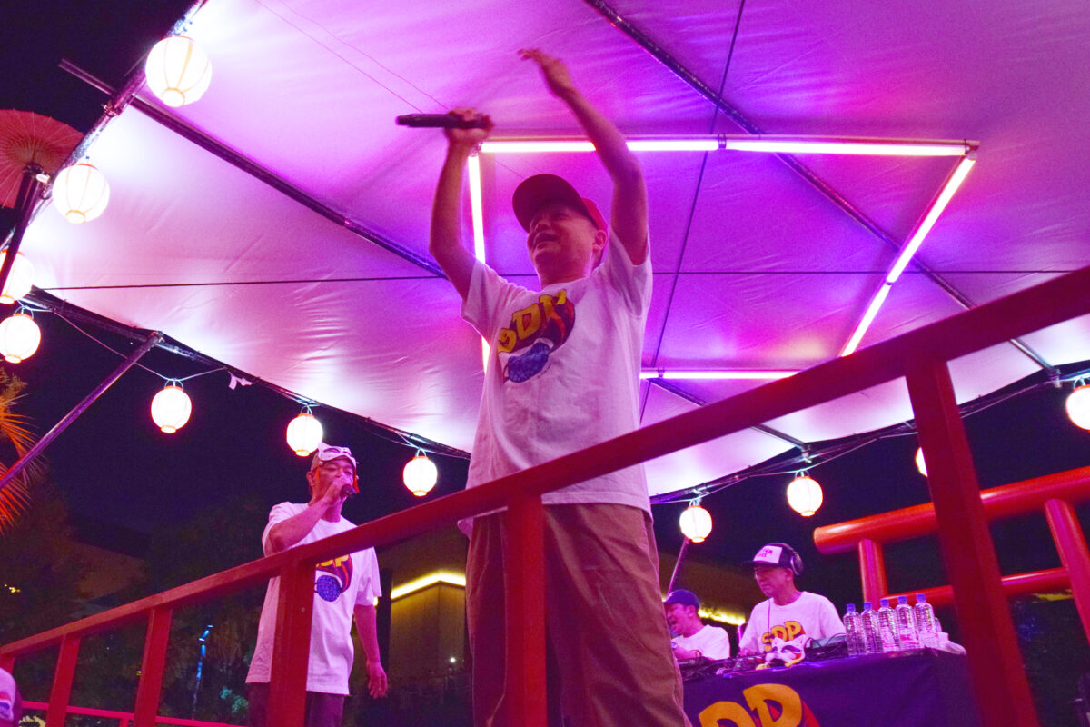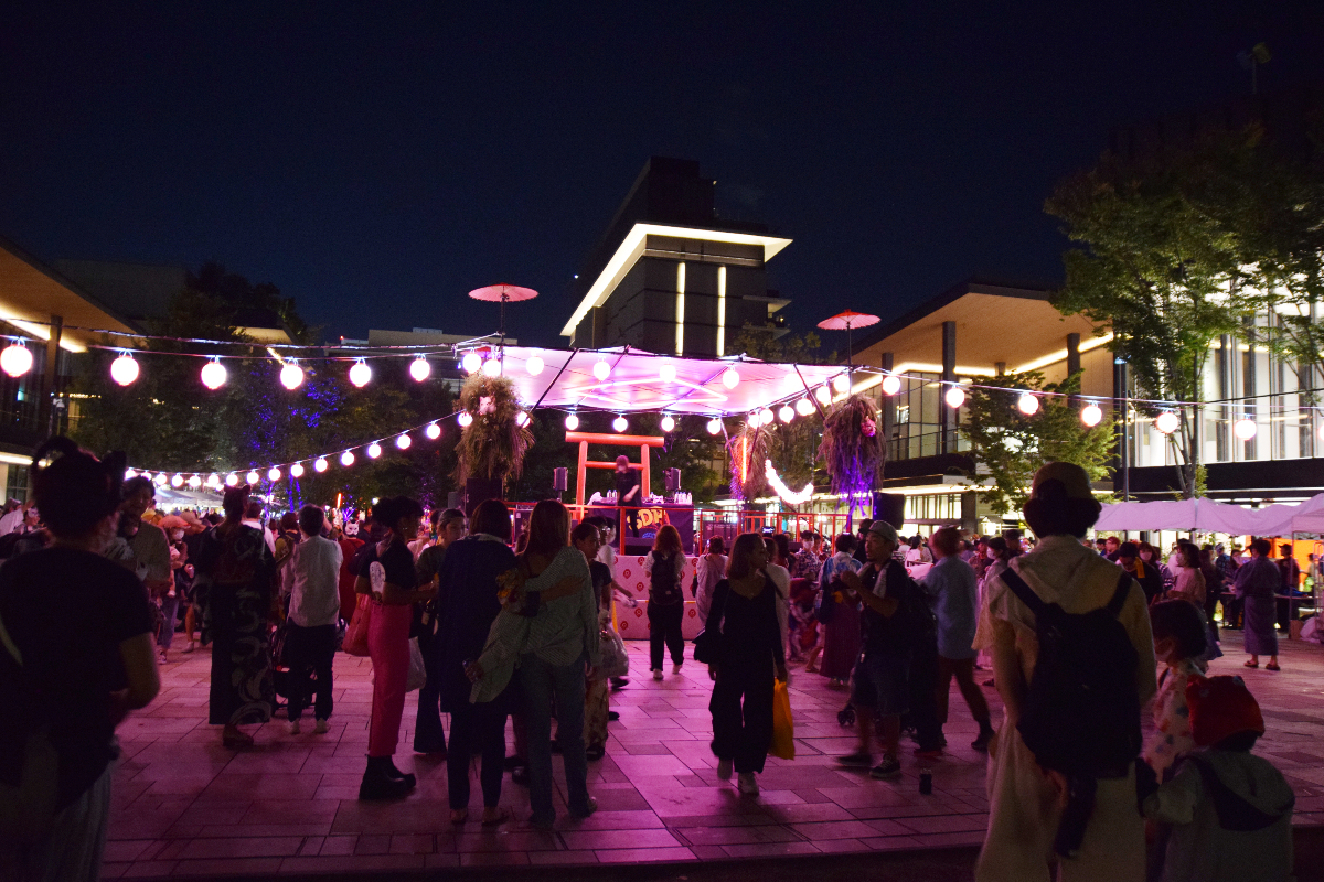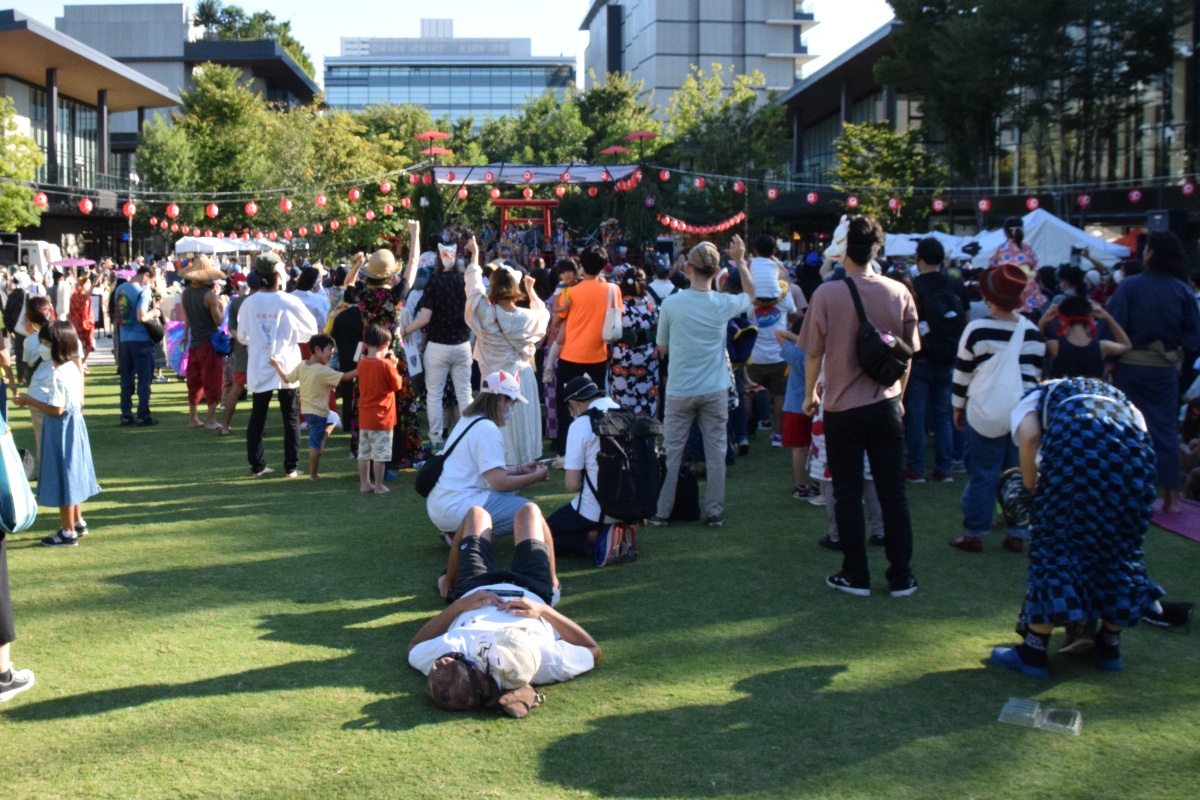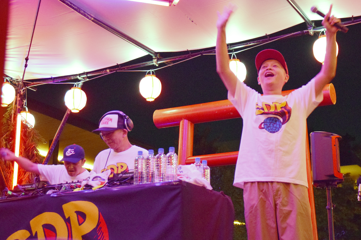 民謡クルセイダーズのライブのあと、DJタイムを挟んで、いよいよお待ちかねの盆踊りタイム!踊りたくてうずうずしていた人たち(筆者含む)が、続々とやぐらの周りを取り囲みます。