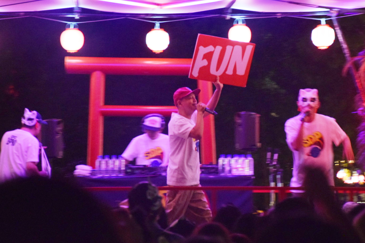 盆踊りタイムで散々踊って、長かったような短かったような、妖怪になりきった1日ももうすぐ終わり。ラストはいよいよ今日の目玉イベント、スチャダラパーのライブの時間です。
