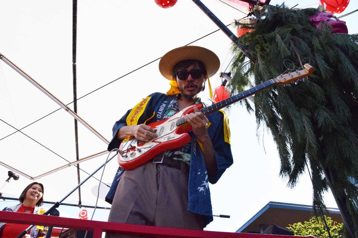 妖怪仮装コンテストも終わり腹ごしらえも済んだところで、いよいよ民謡クルセイダーズのライブがスタート!優勝した「みちのく妖怪」さんもお目当てだと言っていた「民クル」、音が鳴りだした途端にたくさんの人たちがステージ前に集まってきました。