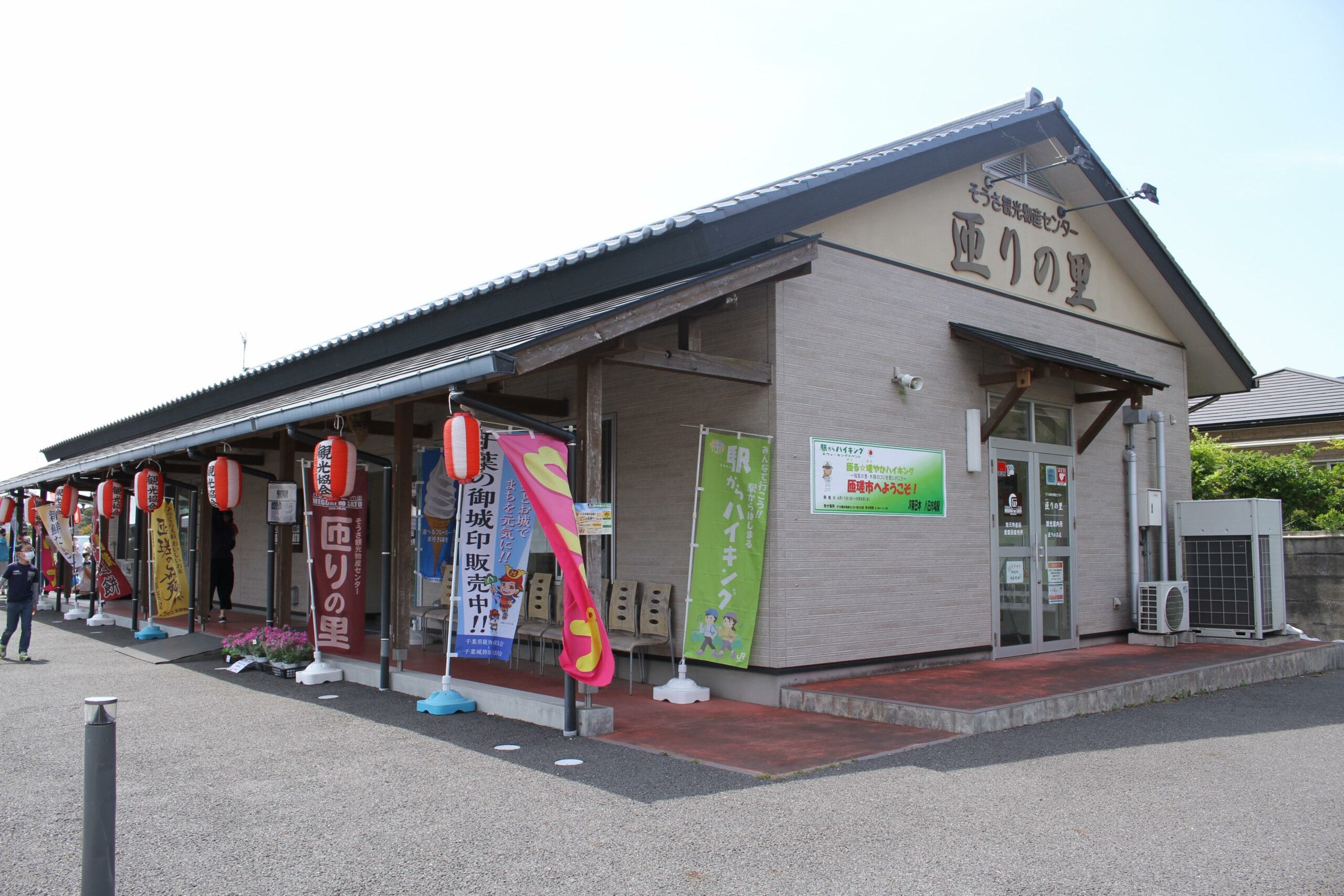 駅から歩いて1分。会場となる「そうさ観光物産センター 匝(めぐ)りの里」に到着しました。その名の通り、匝瑳市の観光案内所を担い、千葉県のさまざまな物産が販売されています。この建物に併設された広場がお祭りの会場です。