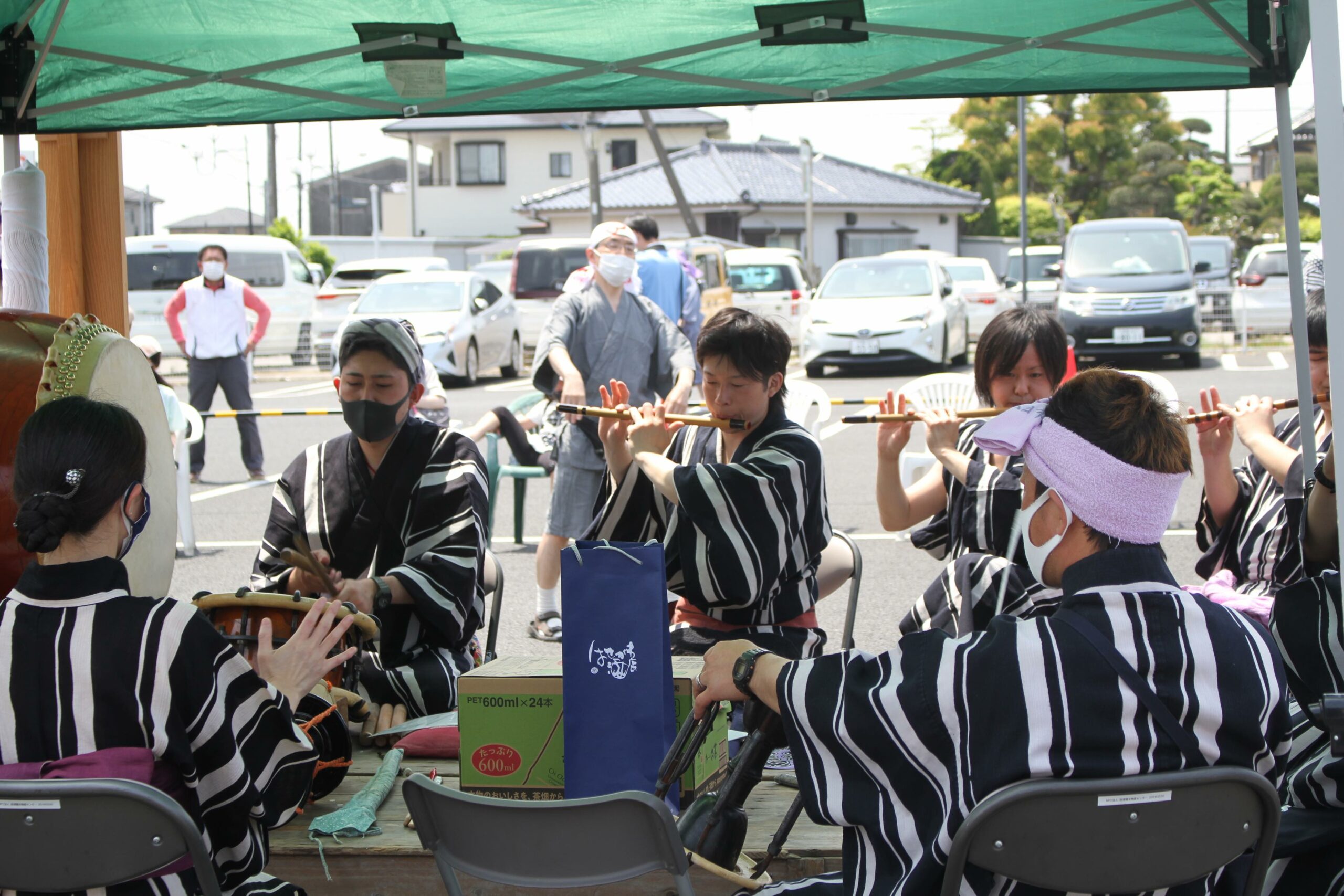 会場に到着すると既に演奏が開始されていました。今回の盆踊りの囃子方を務めるのは、「萬町親和會」さんです。CDの音源などではなく、生演奏と生歌で踊ることができるのが「八日市場の盆踊り」の魅力かもしれません。主催者の方によると、地区ごとに演奏のスタイルや味わいは変わるそうです。コロナが収束して盆踊りが再開したら、いろいろな地区を巡って聴き比べをしたいものです。