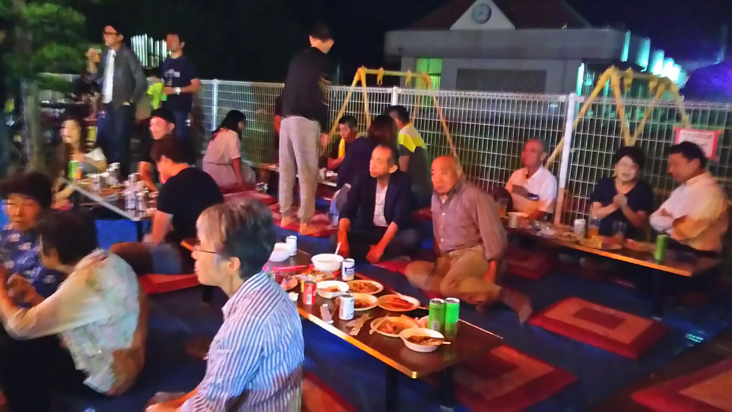 祇園祭をお祭りの本番とみなすと、盆踊りはどちらかというと地域の人たちの憩いの時間という感じがします。私が2018年に八日市場の盆踊りを訪れた際も、囃子方も、見物人も、分け隔てなく会食しながらリラックスする光景が印象的でした。