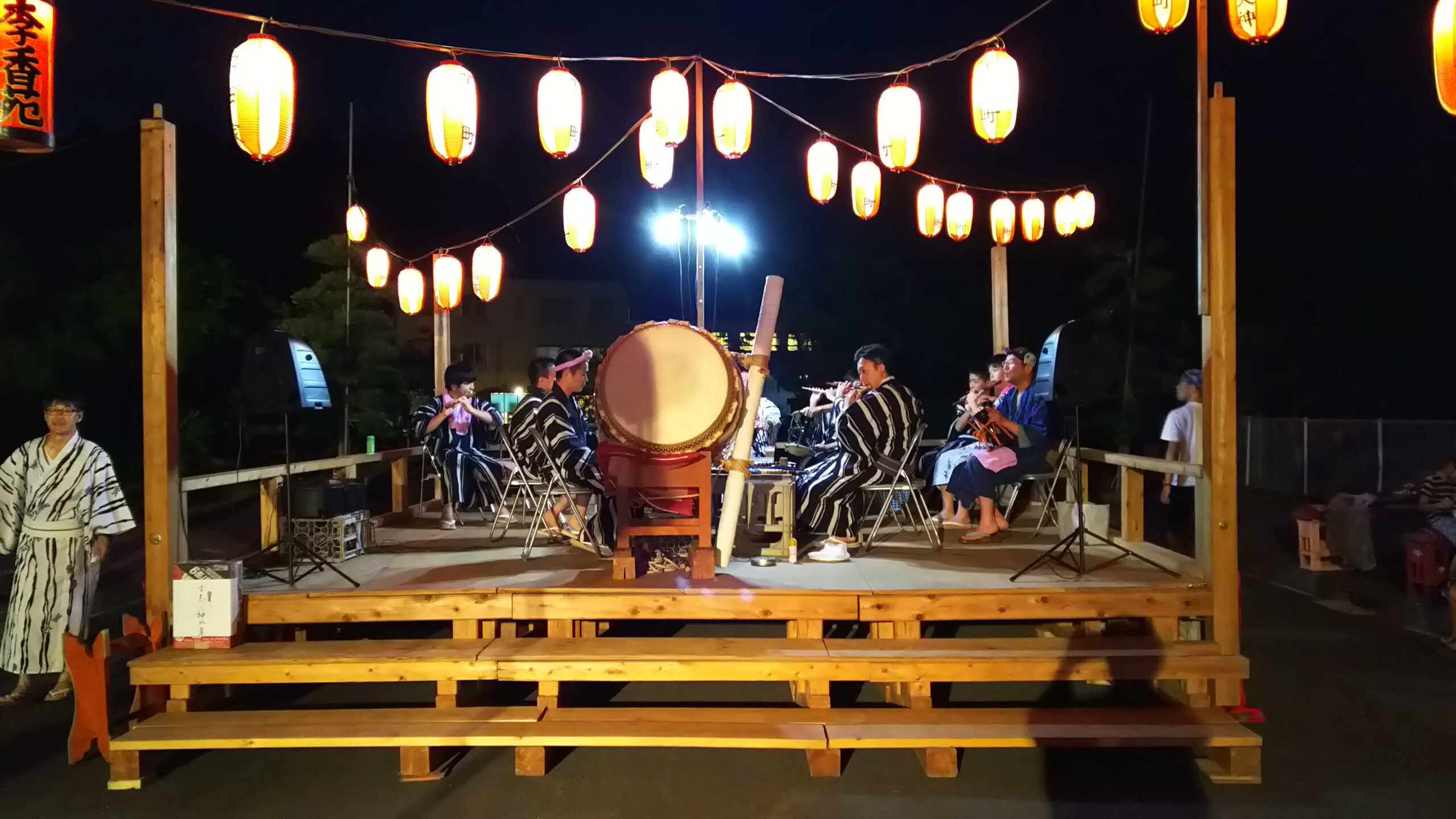 盆踊りコーナーが終わると、最後には囃子方による祭り囃子の演奏が行われました。お囃子の盛んな地域であるだけに、その見事な演奏に聞き惚れてしまいます。