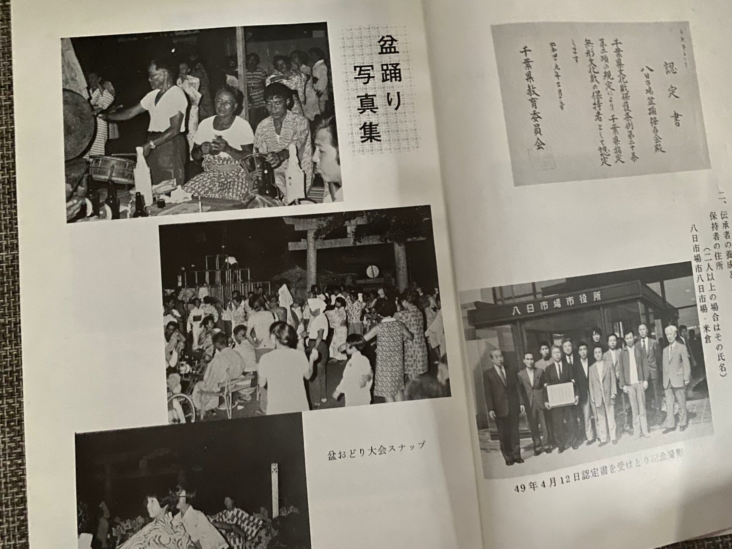 昭和52(1977)年に発行された『千葉県指定文化財 八日市場盆踊り 現代的意義とその歴史』(八日市場民謡保存会)という資料を読むと、この地域の盆踊りが昭和の初め頃までは各所で毎晩のように催され、若者たちが明け方まで踊ったという証言が残されています。この本が発刊した時点では、既に盆踊りは下火になっていたようですが、それでも2022年の現在まで、形は変われど絶えず盆踊りの文化が継承されていることは奇跡のようだと感じます。