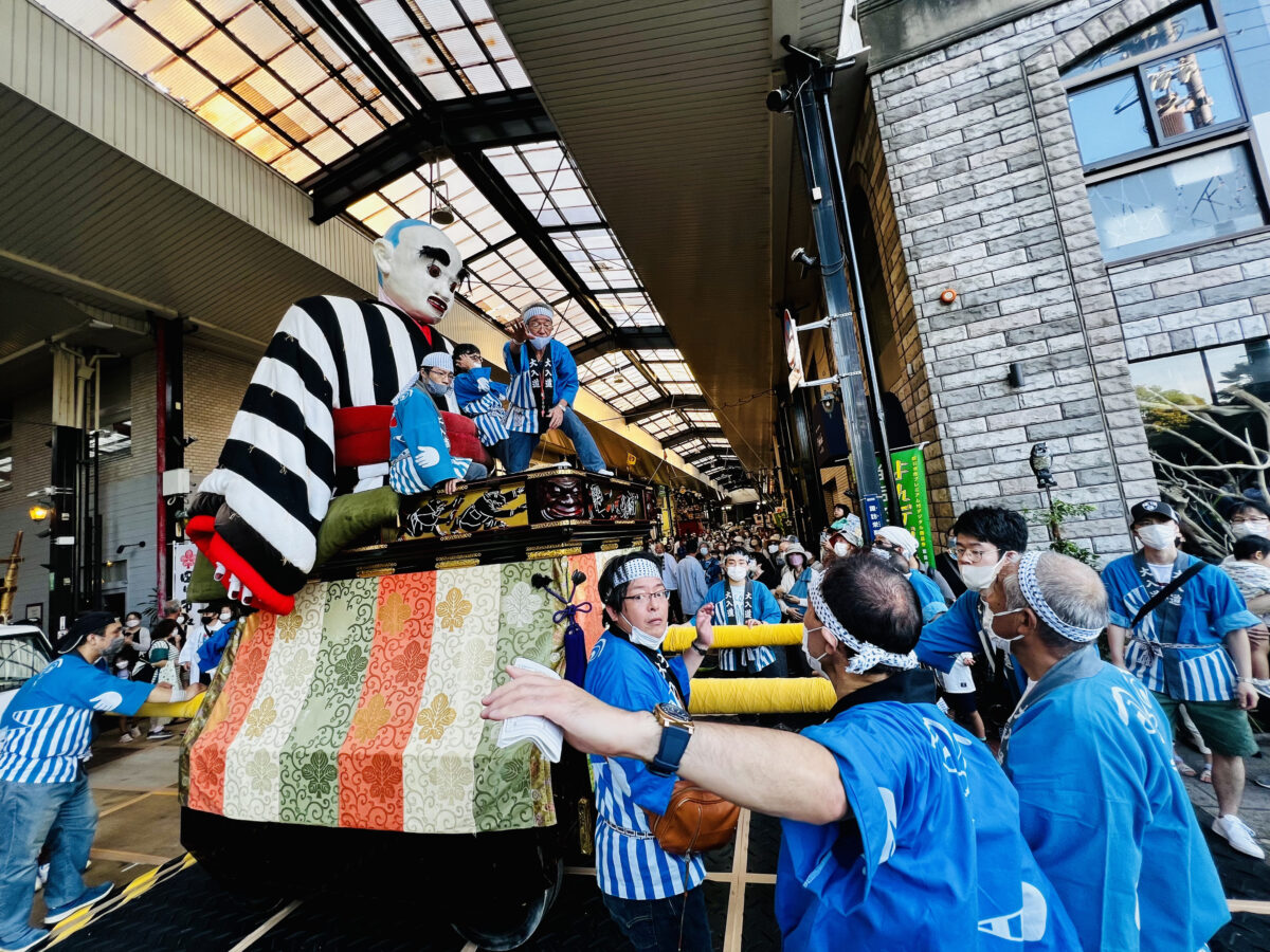 2日目は歴史を感じる大名行列、獅子舞や諏訪太鼓といった伝統芸能の披露に加え、四日市の文化財でもあるからくり人形などの作りものを乗せた山車(だし)の数々が練り歩きます。なかでも、四日市市のマスコットキャラクター「こにゅうどうくん」の“お父さん”でもある「大入道」の迫力と精巧な動きは必見です。