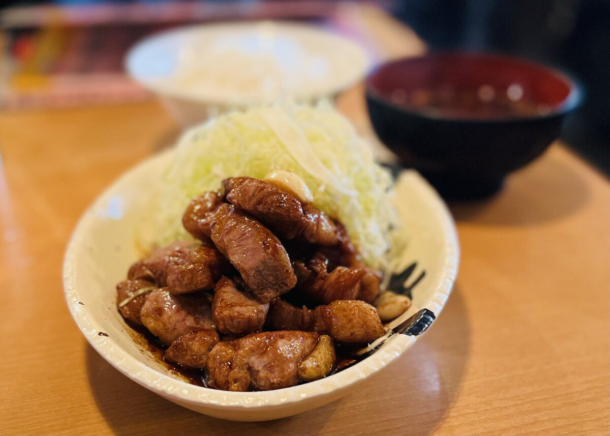 中華料理店・ラーメン店・居酒屋・洋食店、様々なジャンルの店で提供され、店によって味付けが異なるというのも興味深い。今回は駅の西口すぐのラーメン屋「トンテキ屋 ちゃん」でいただきました。