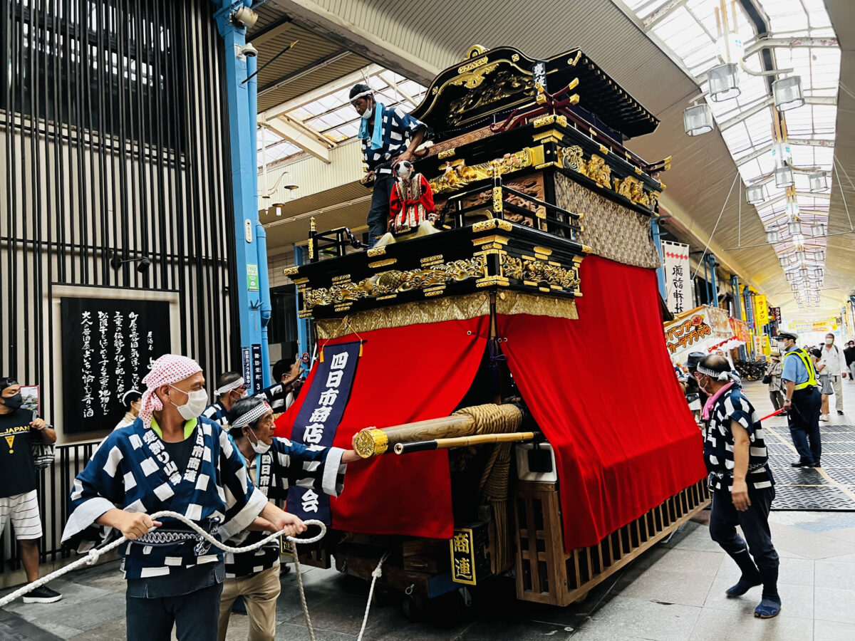 新宿から深夜バスで名古屋へ。サウナ店のウェルビー名駅と国際芸術祭・あいち2022に寄って時間をつぶした後、近鉄・名古屋駅から約30分、近鉄・四日市駅へ到着しました。祭りは、四日市商店街のアーケードと、そこを抜けたところにある諏訪神社で行われている様子。