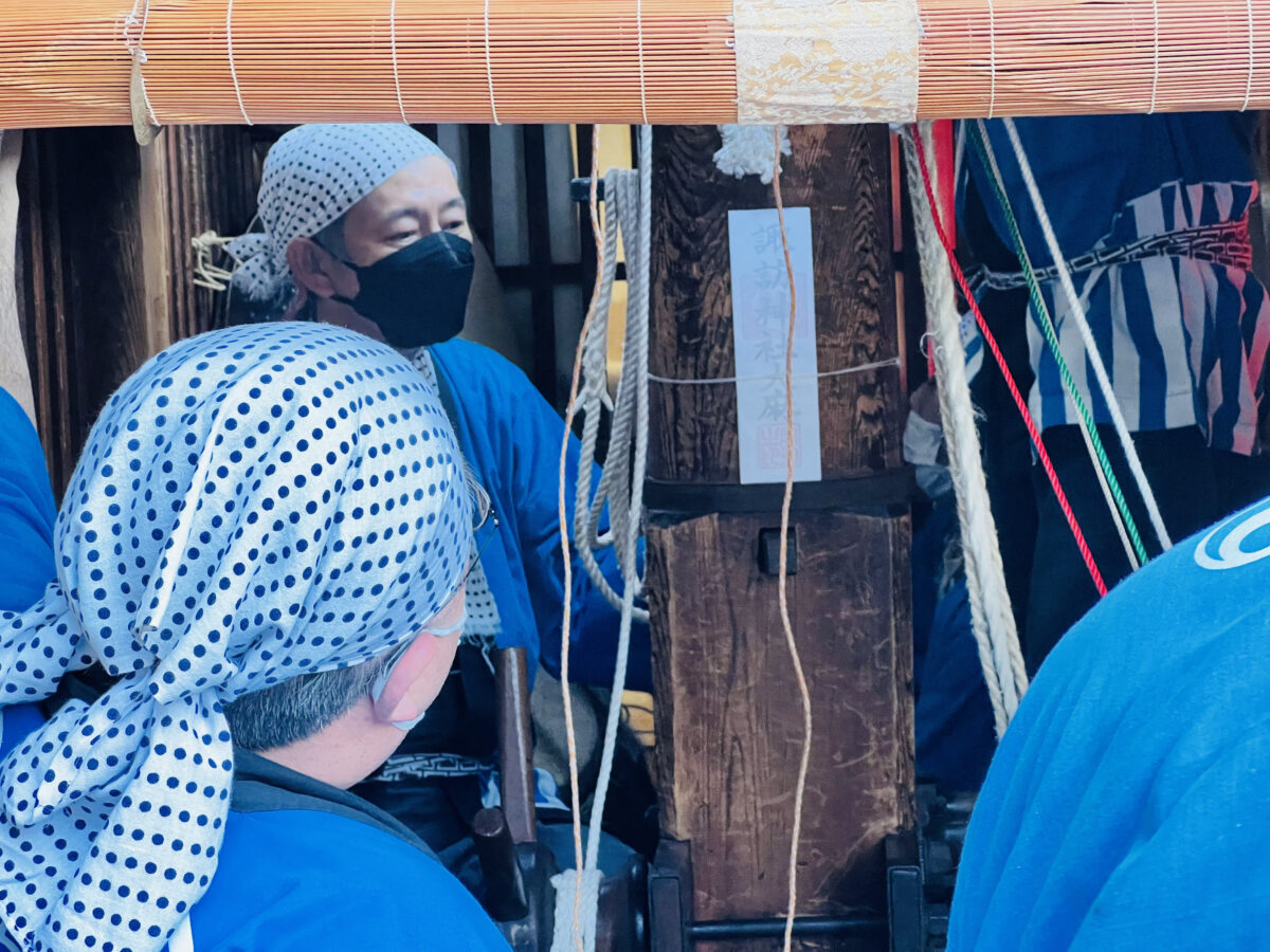山車に乗っている人と比べると改めてその大きさが実感できます(巨神兵に乗るナウシカかよっ!)。やっぱりデカ過ぎて、90度曲がる方向転換も大変なのよ。