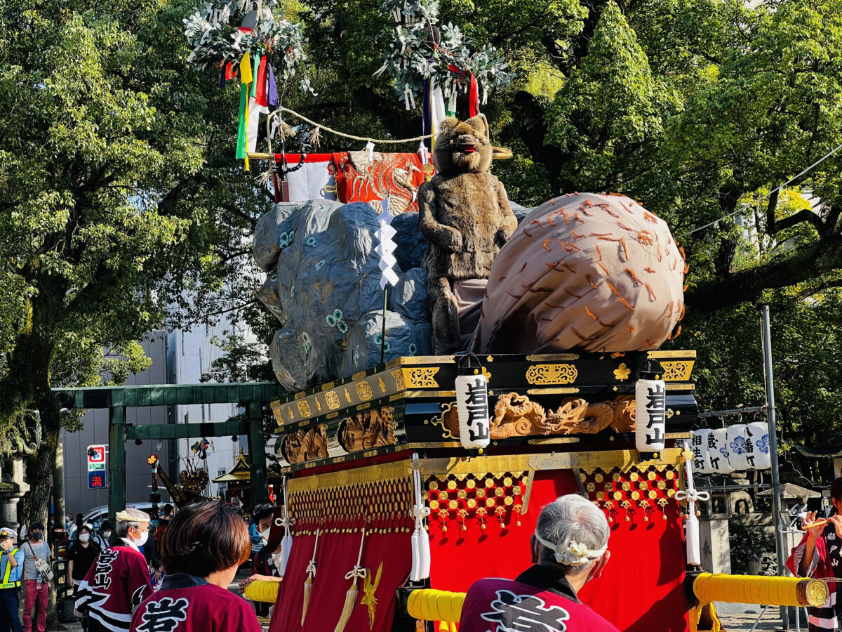 全集中、狸の呼吸。毎年、10月の第一土日は四日祭り。からくり山車が一つ、岩戸山ではアマノウズメノミコトに化けていた狸が正体を現わし、キンタを膨らませてポヨヨンポヨヨンするゾ! 神前にこれを…。大江戸じょーくには、大爆笑じゃな。 pic.twitter.com/28P1xGzNcW