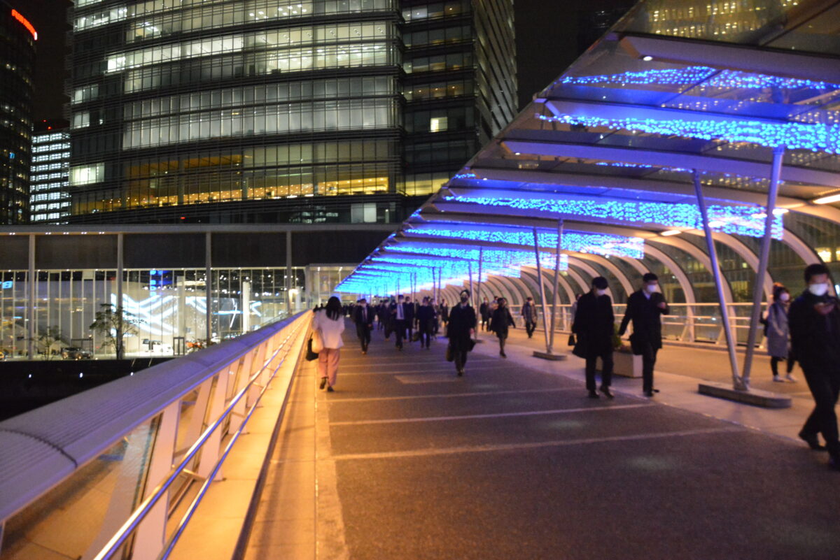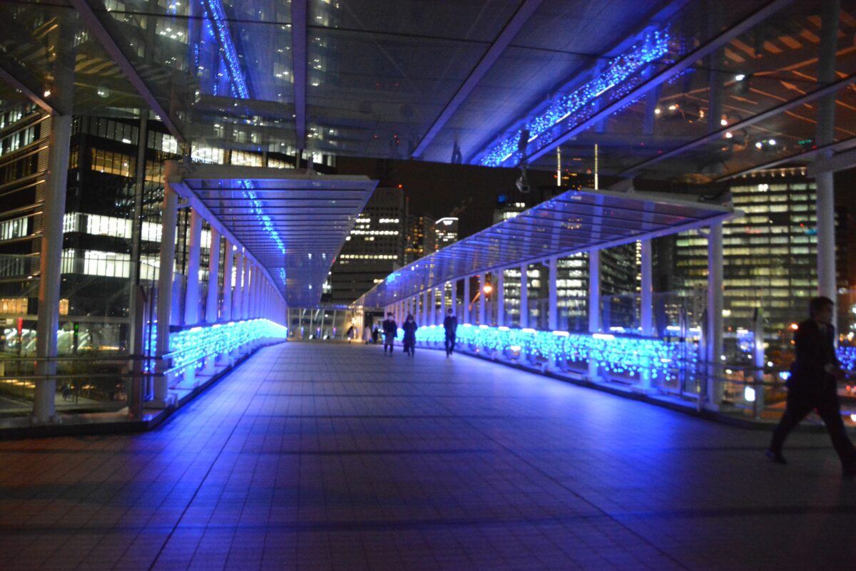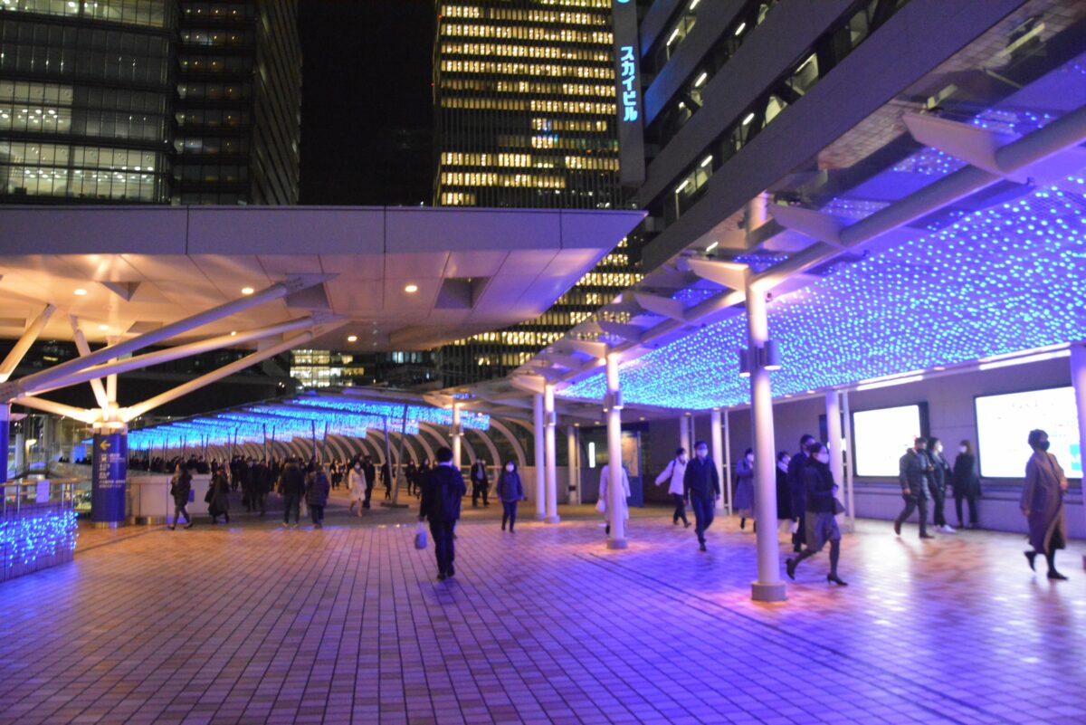 グランモールを歩き終えてもまだまだ、イルミネーションの輝きは失われません。明るく照らされる53街区、「みなとみらい歩道橋」、「はまみらいウォーク」を歩けば、横浜駅が視界に入るようになります。