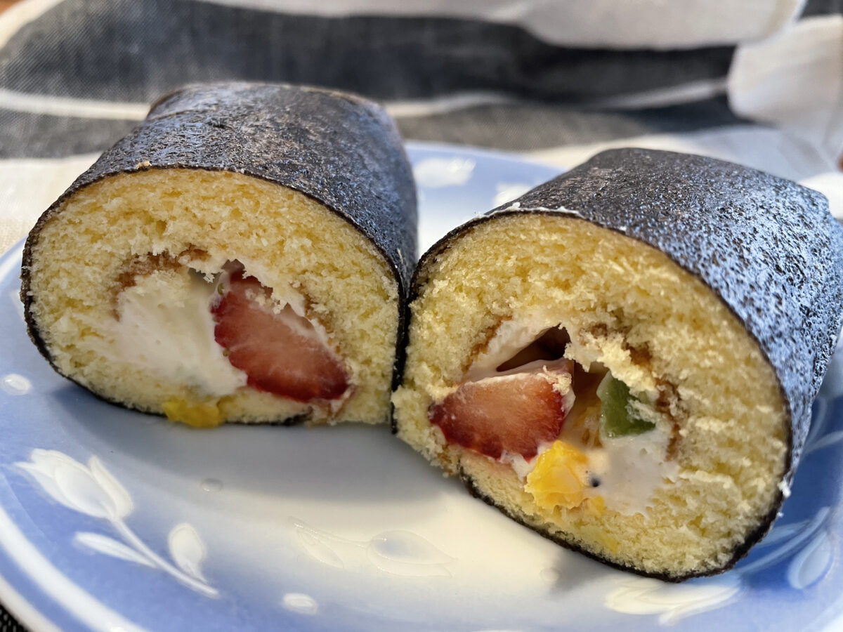 ふわふわのスポンジ部と海苔に見立てたブラックココアクレープの触感が異なり、内部のホテルオリジナルクリームは甘すぎず、さっぱりとしていました!いちご・キウイ・オレンジのフルーツの甘みや酸味とのマリアージュがとても絶妙で、一本ペロっと食べてしまいました!