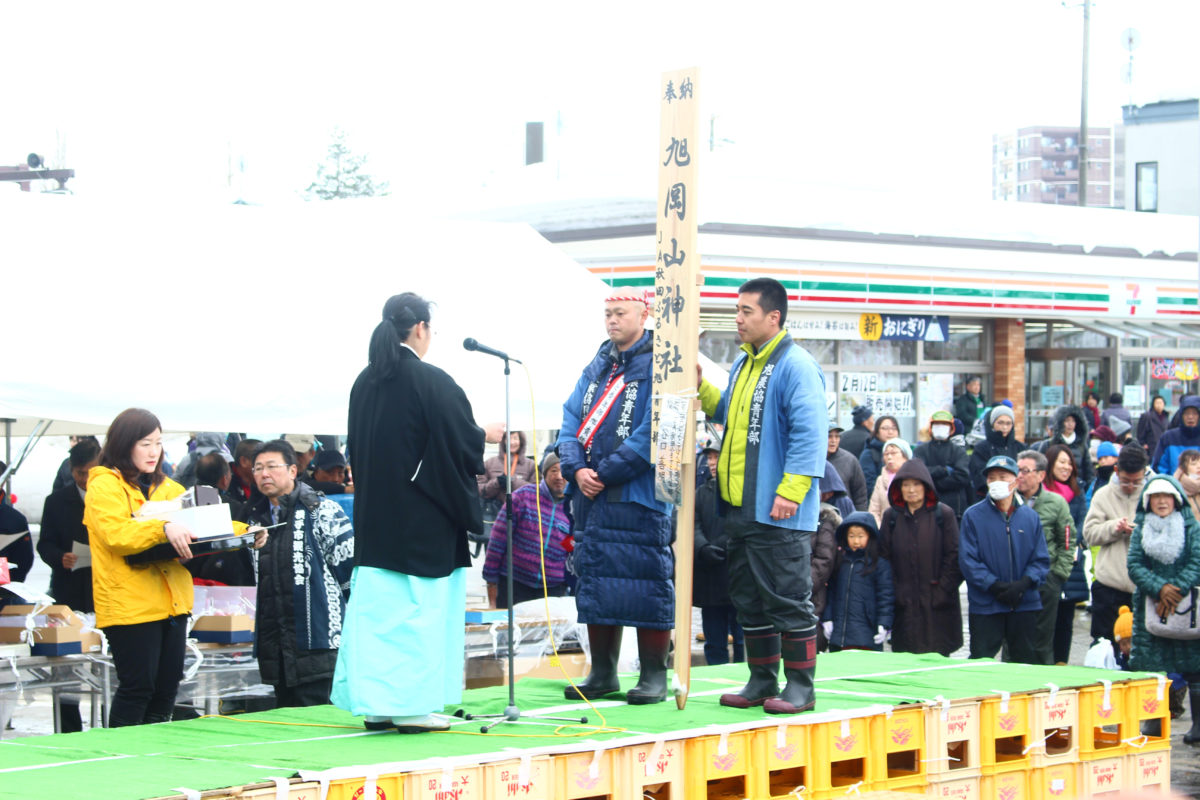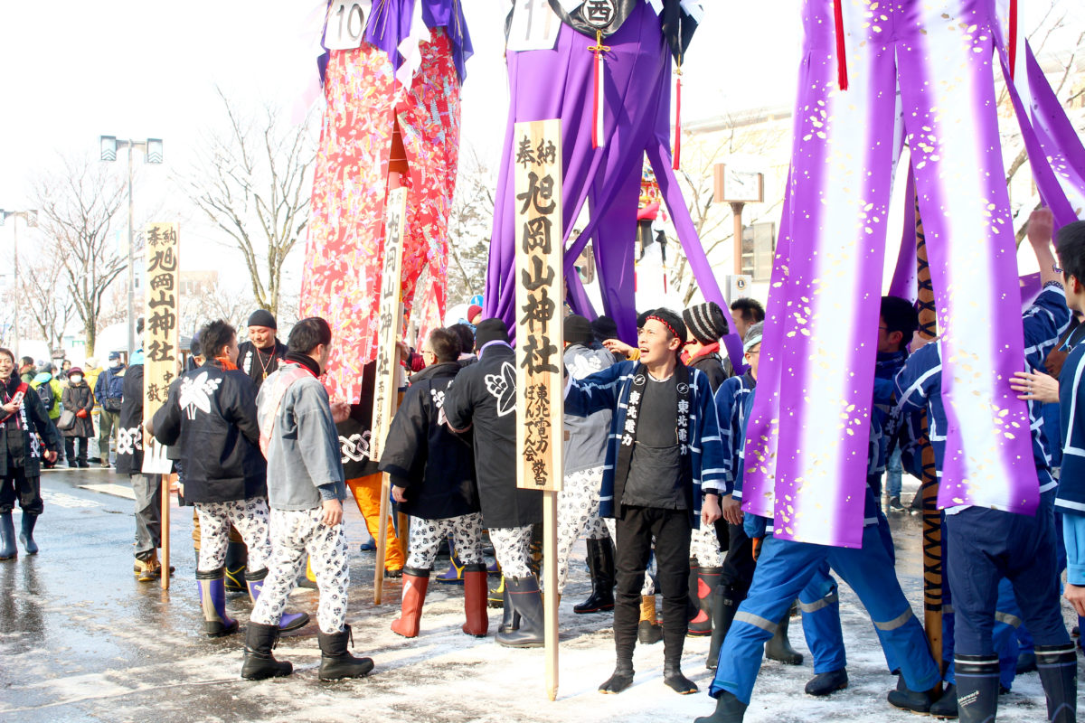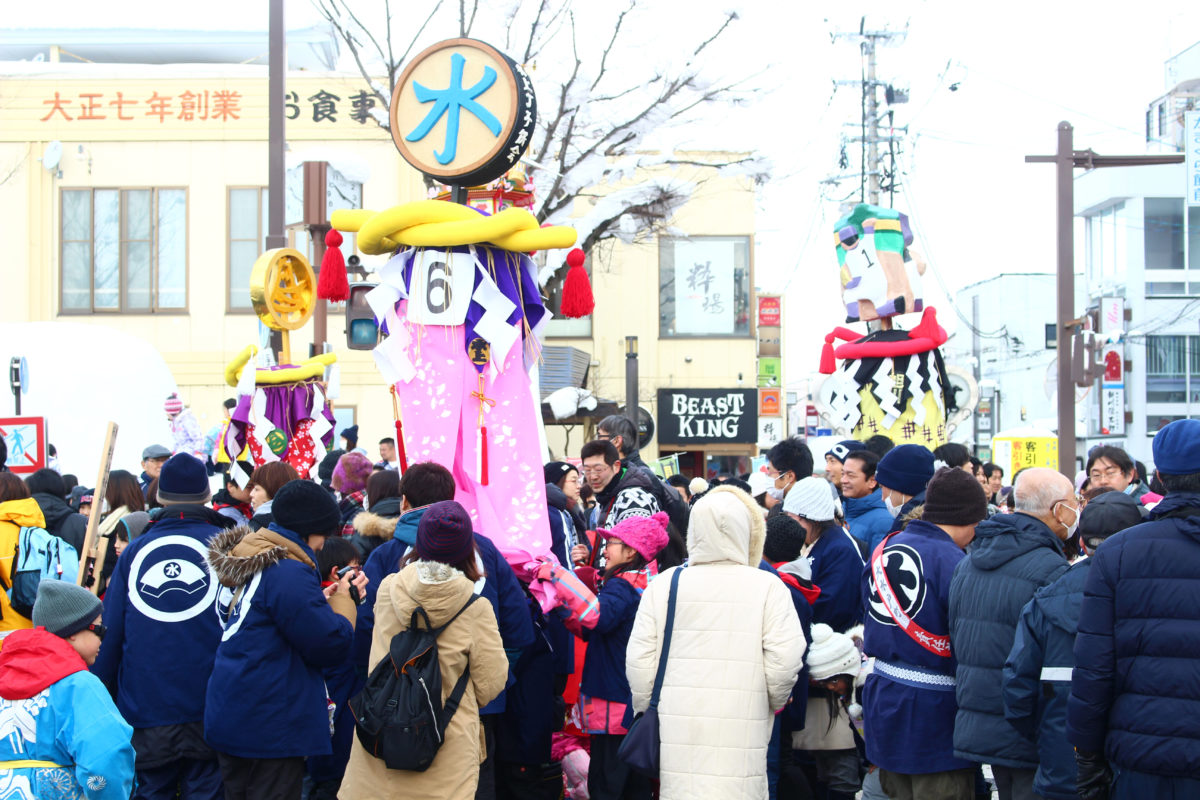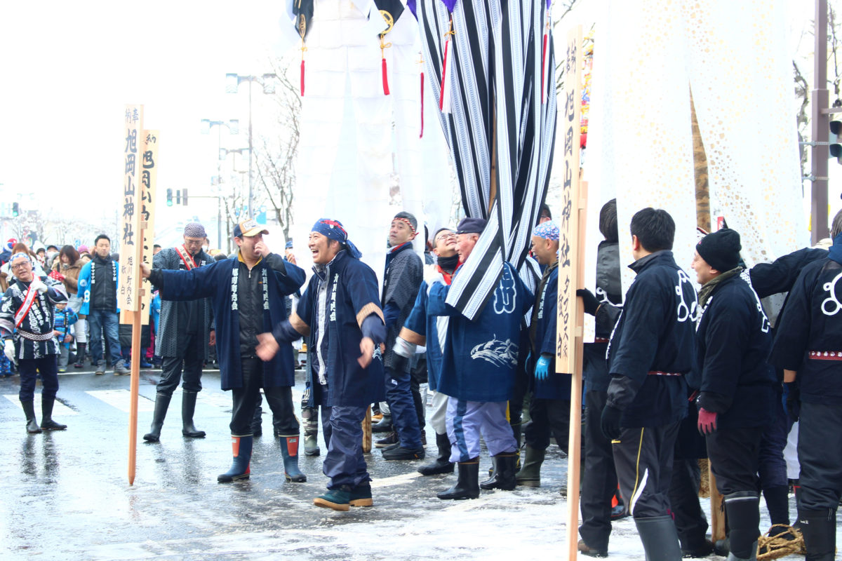ぼんでんコンクールの表彰が終わると、ぼんでんは各地に帰っていきます。翌日の「旭岡山神社梵天奉納祭」では、朝10時にまたこちらに集合し、3時間かけて旭岡山神社まで練り歩きます。今日とは打って変わって、荒々しさが目立つ二日目の横手のぼんでんも注目です!