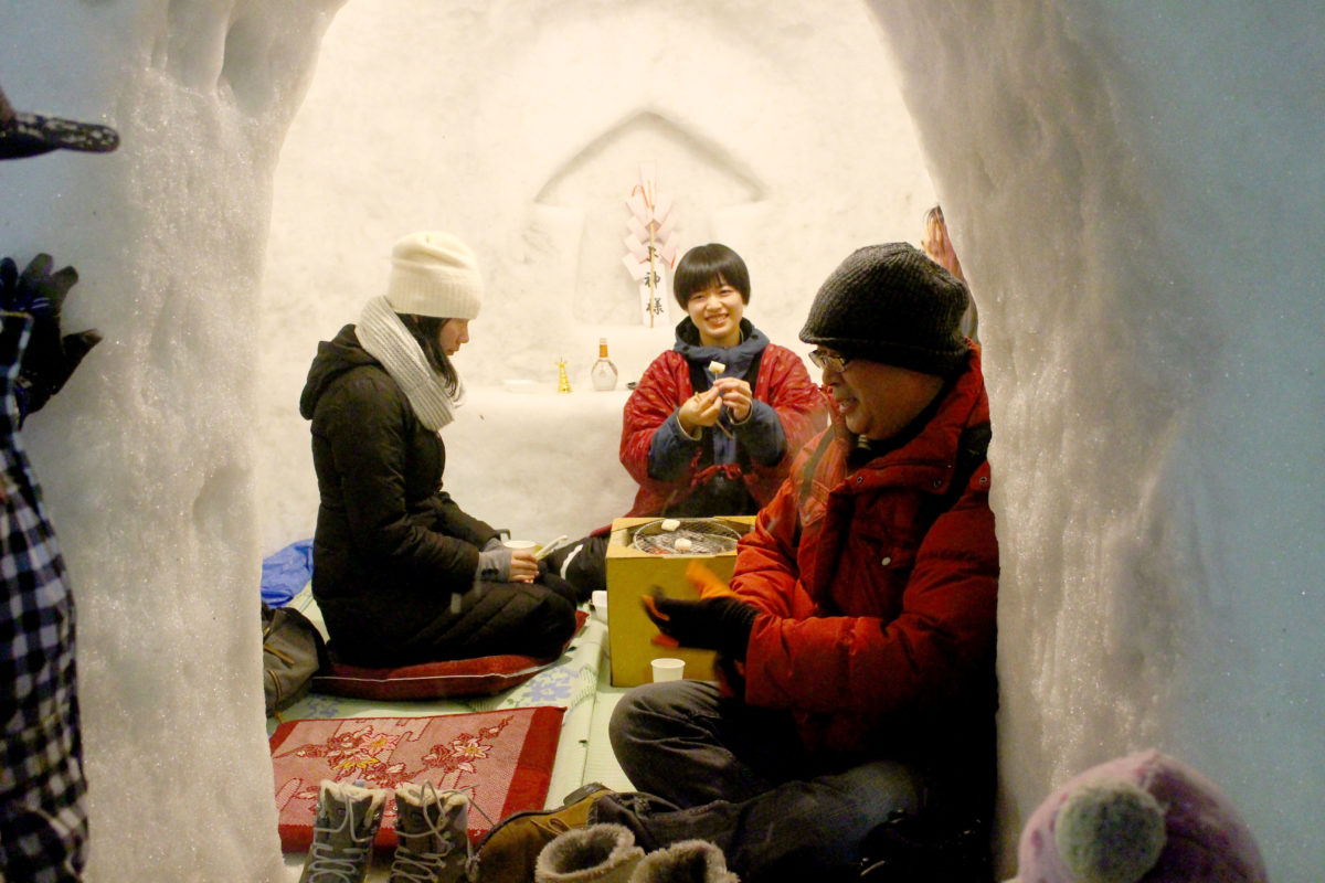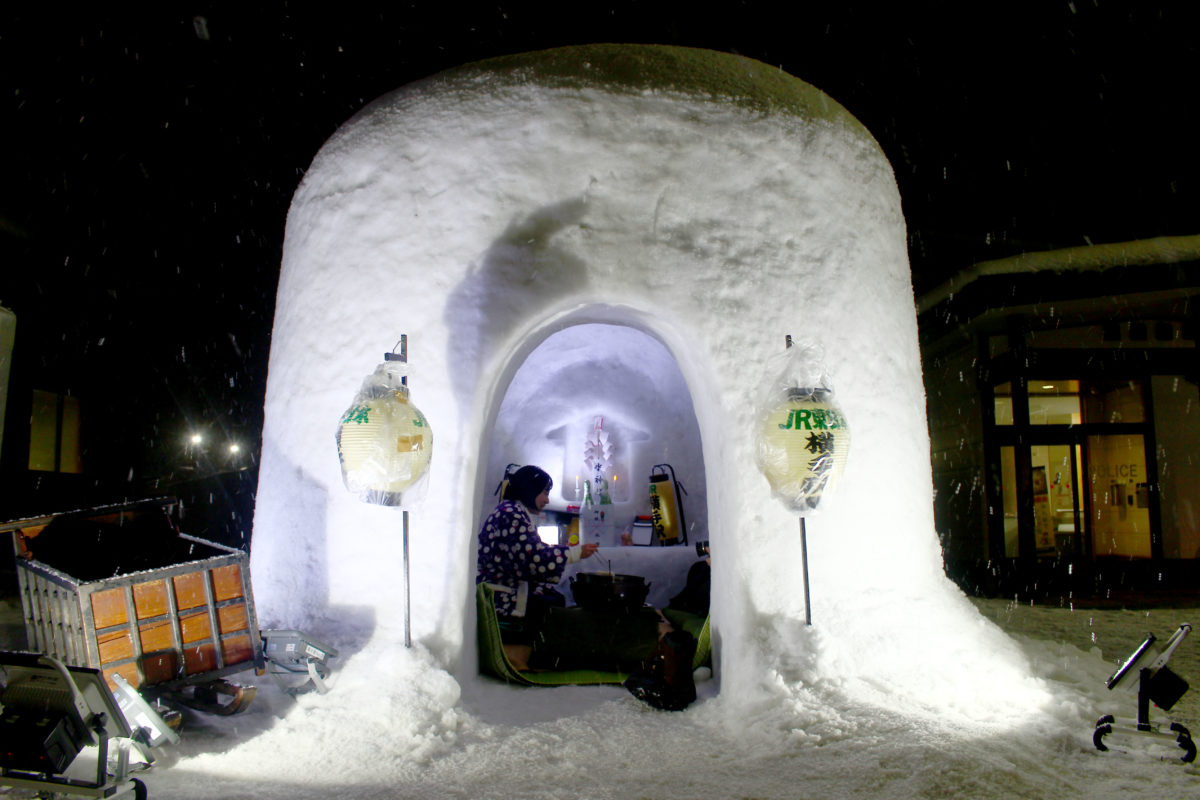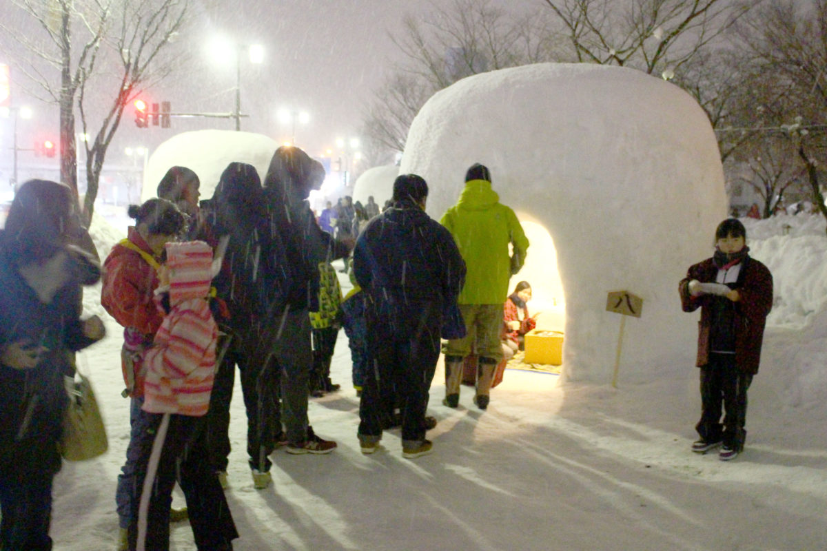 ぼんでんを見た後は、横手のかまくらも堪能できます。ぼんでんを見に来られる際は、ぜひかまくらも体験してください!ぼんでんの会場の周りにはかまくらがたくさんあり夜になると賑わいます。