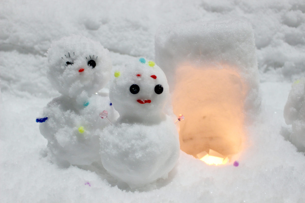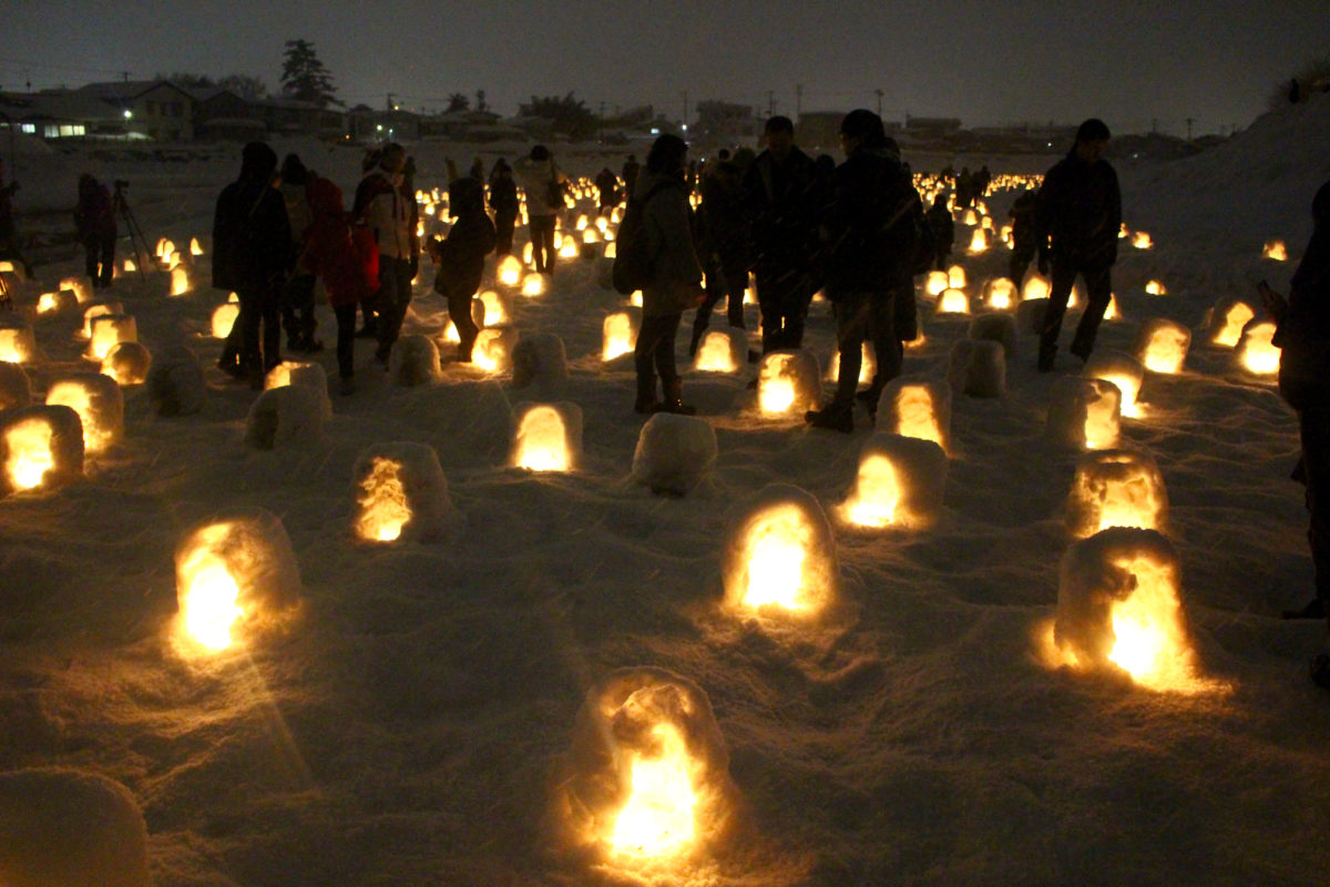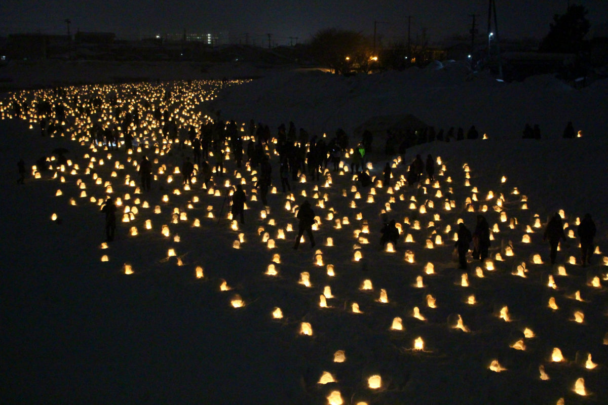 蛇の崎河原ではミニかまくらが幻想的に灯っています!ぼんでんの会場から徒歩5分程度で行けるので、ぜひこちらもご覧ください!