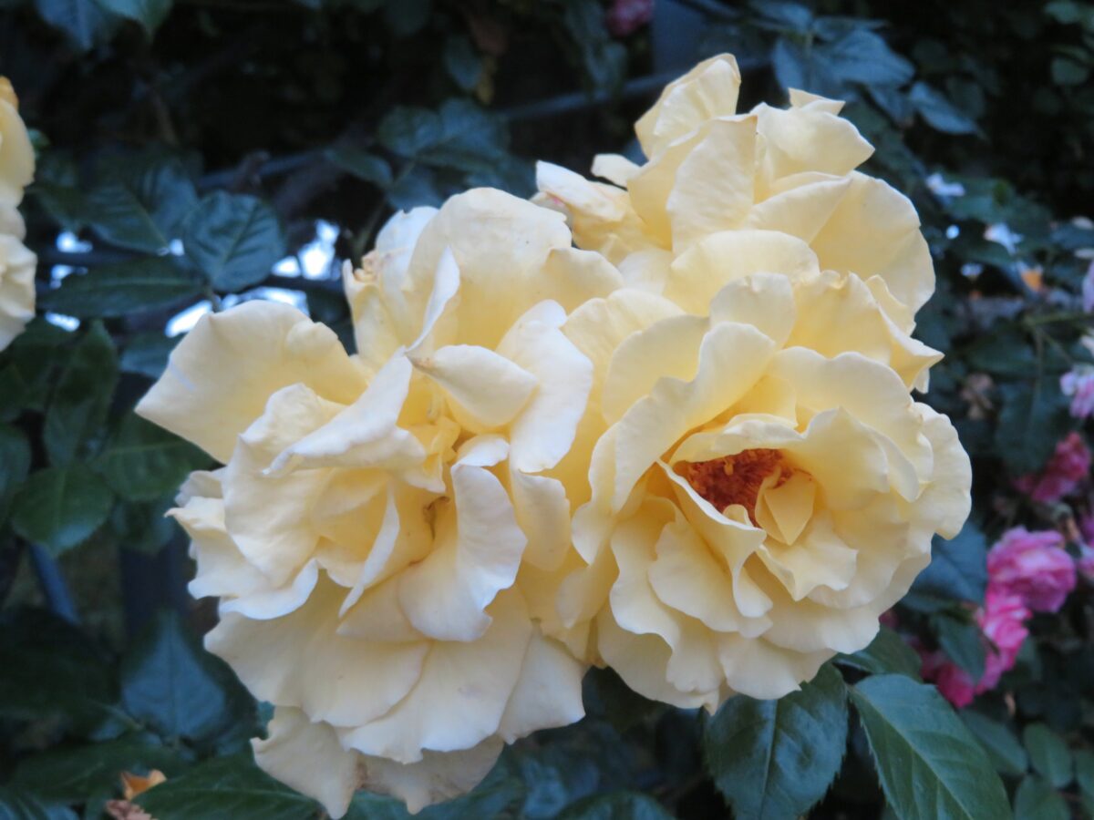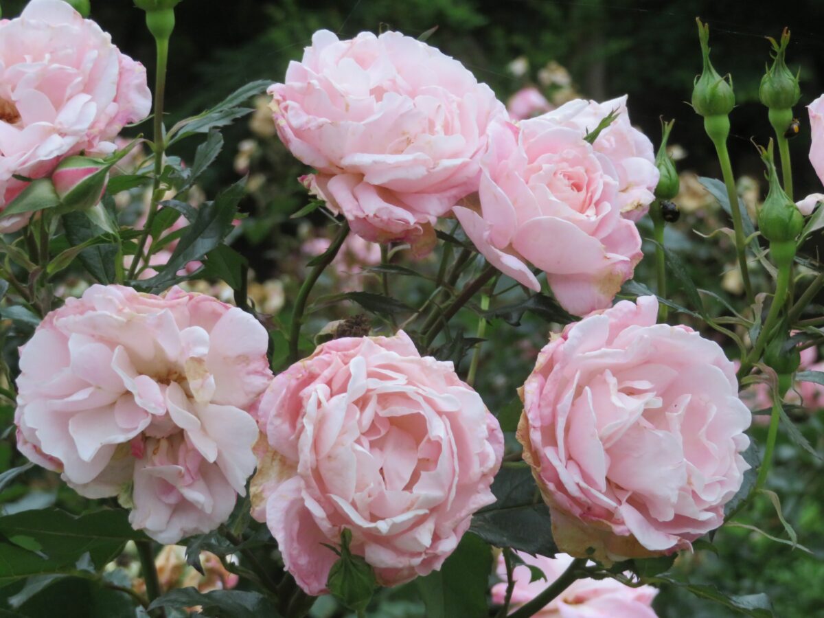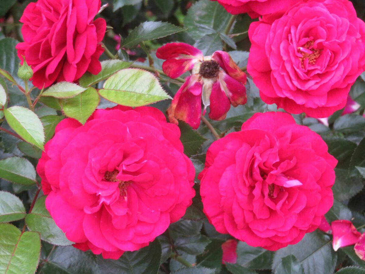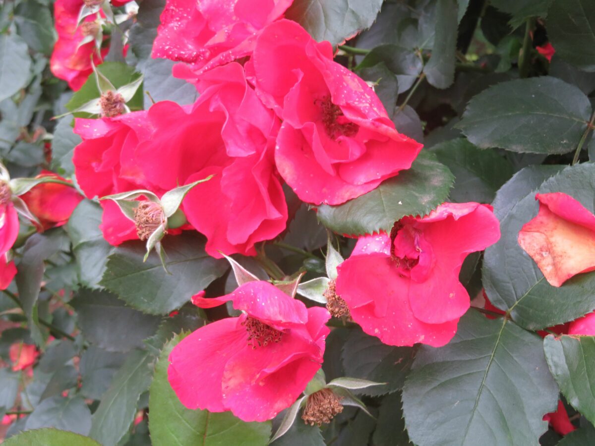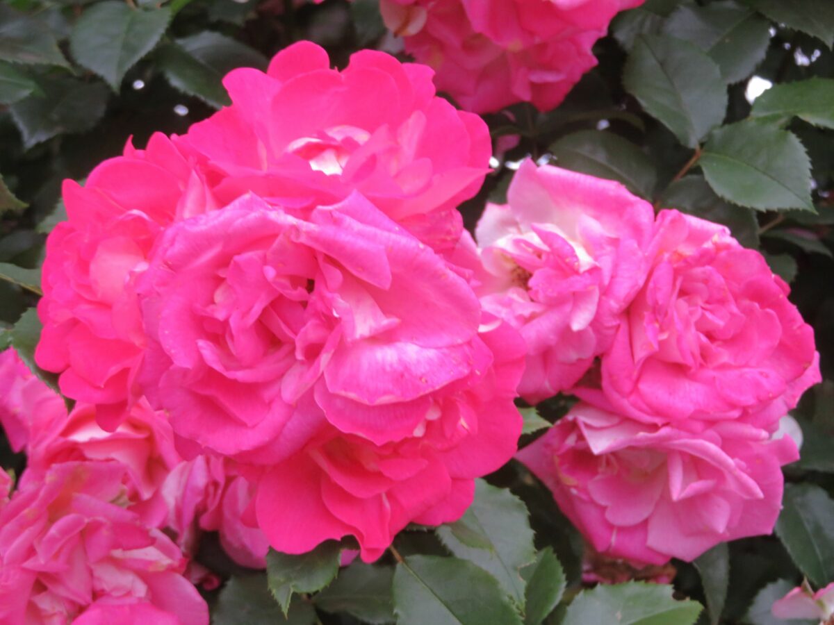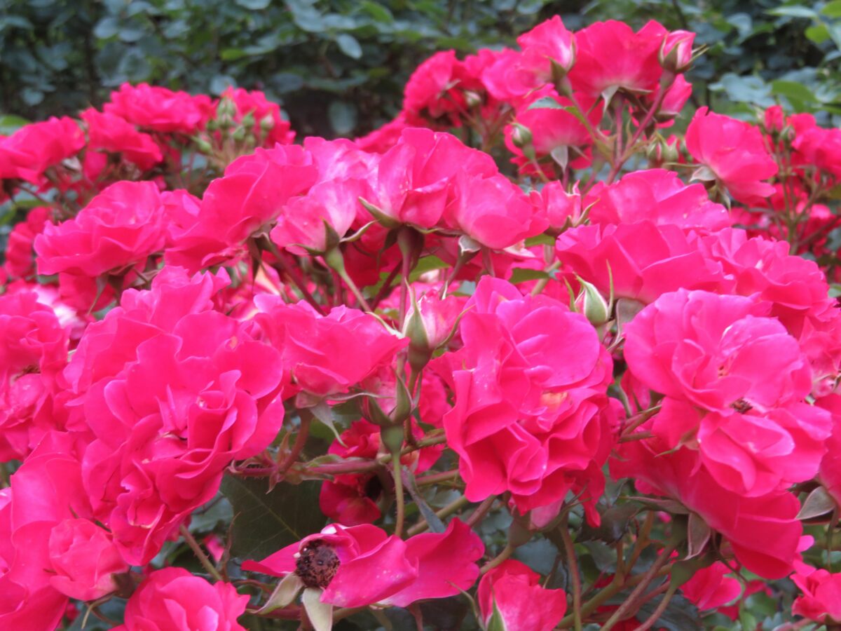バラ園の西端は首都高速埼玉大宮線の高架路に沿って、ツルバラが花の壁を作ります。