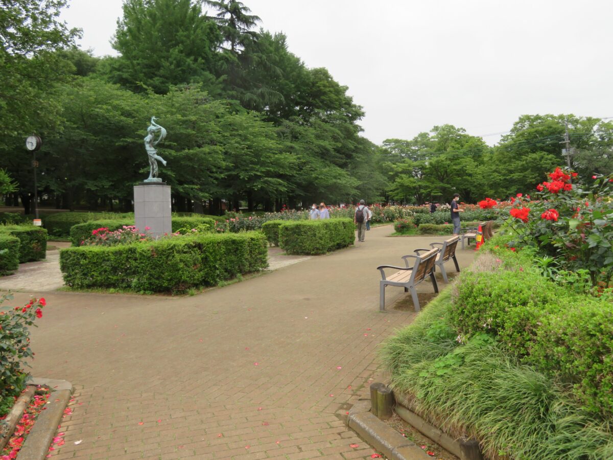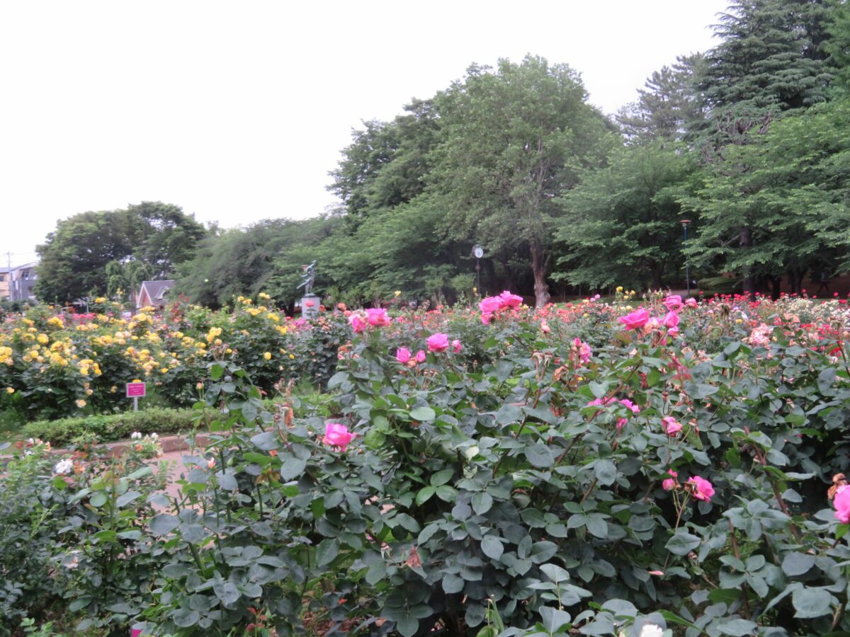 与野公園はJR埼京線の与野本町駅の西1キロ足らずのところに開設された緑の公園です。約51,000平方メートルの敷地の西部にバラ園が整備されています。中央のモニュメント『翔』から放射状に花壇が広がります。