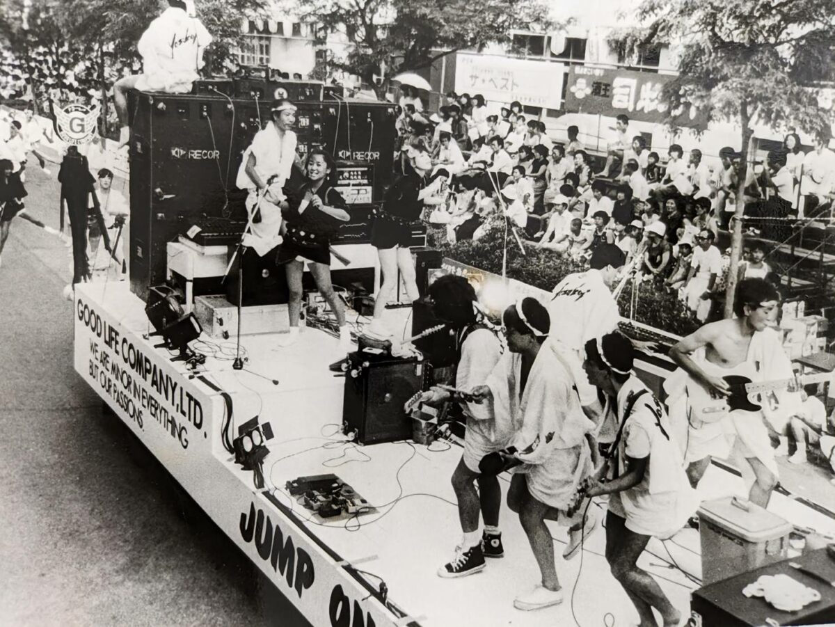 目立ちたいからこそ、アイデアが出てくるというか(笑)。今でこそ、よさこい祭りに関するいろんなルールがありますが、昔は規制も少なくてアイデアが反映されやすかったんですよ。一番有名な帯筋のエピソードが、地方車に20tの大型トレーラーを使用したこと。まだ人数規定もなかったので、踊り子も総勢300人以上になってしまって、その後トレーラーの使用が禁止になったそうです(笑)。