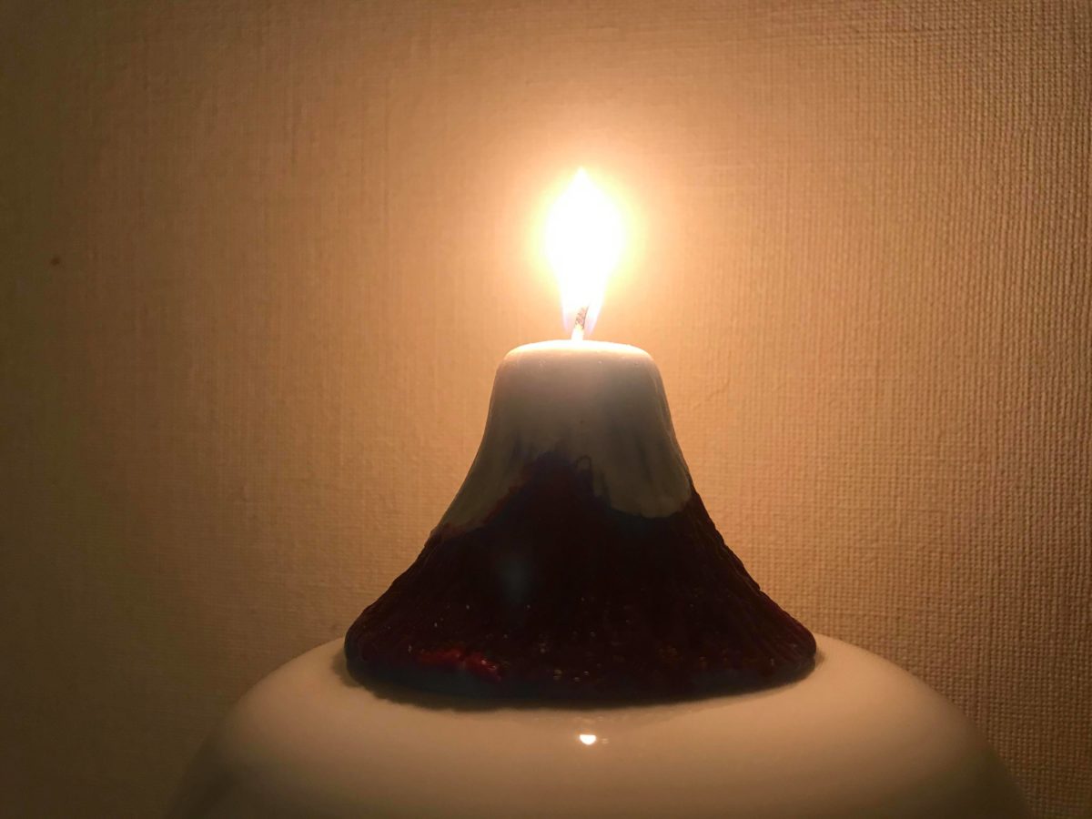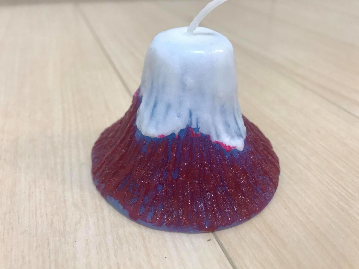 これを自宅で再現するために用意したのは富士山型のロウソク。より実物に近づけるために赤く塗装してみました。