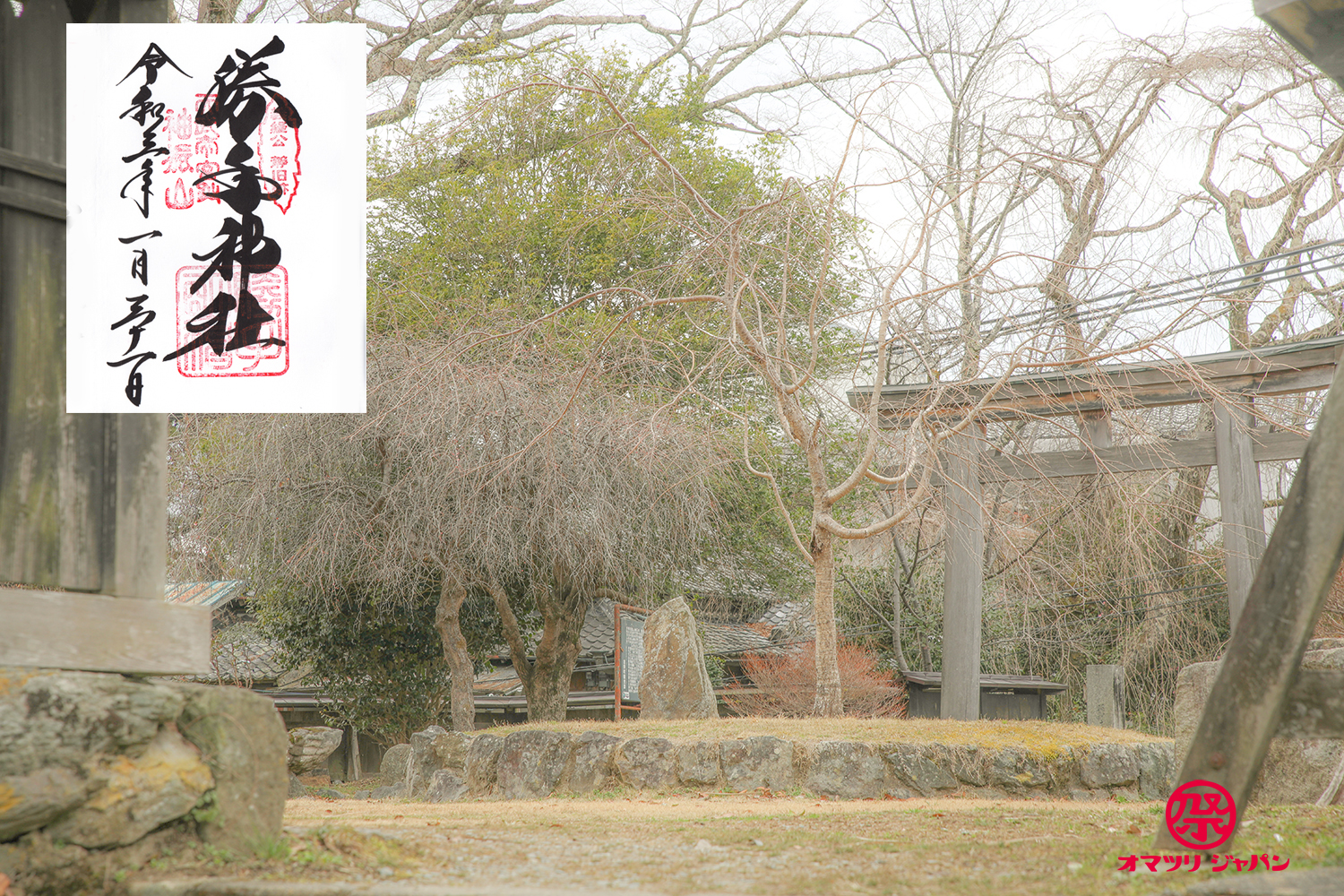 天皇が即位するときに舞う「五節舞」のはじまりの地である袖振山は勝手神社のすぐ裏、宮坂の途中にあります。山というには見落としてしまうような小さな丘ですが「袖振山」「勝手桜」という石碑を目印に見ていってください。