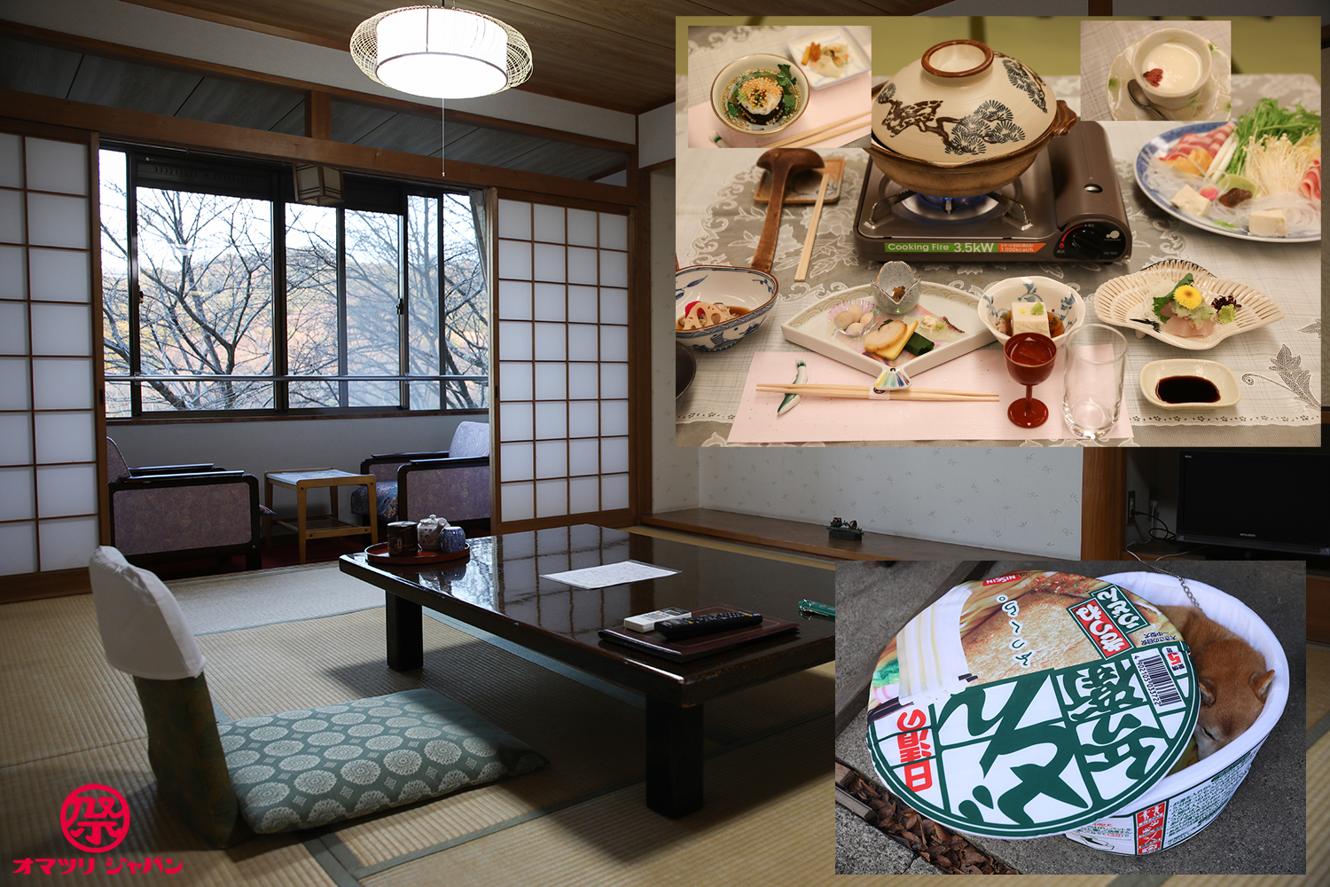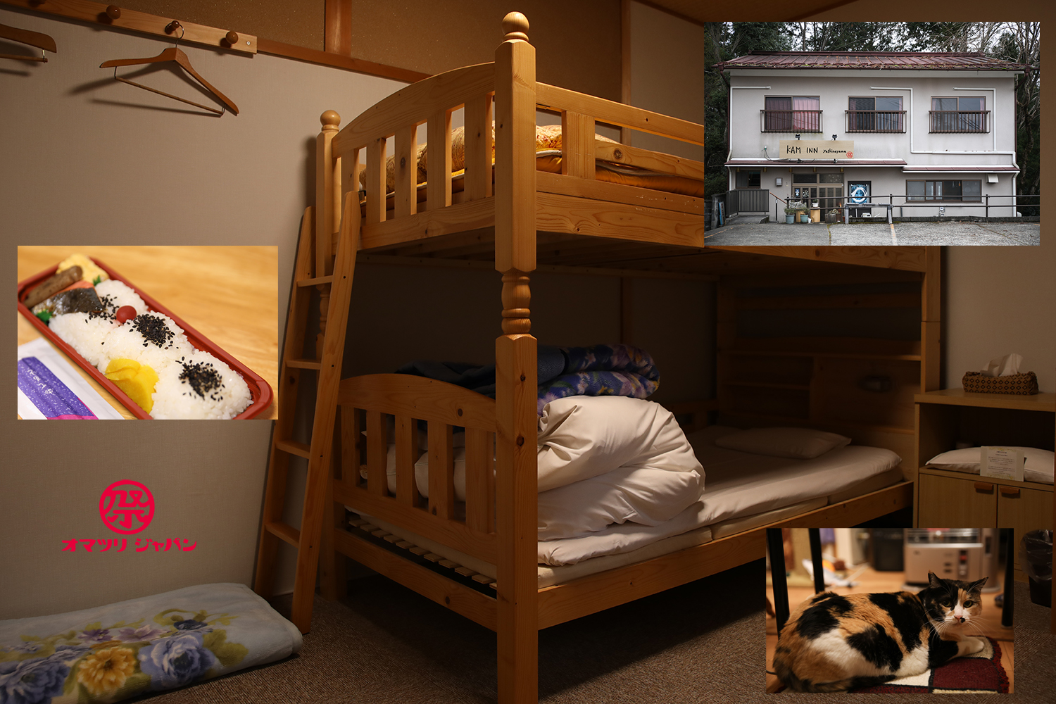 一名でも個室の一部屋で安心です。共同キッチンやシャワールームが使えます。プラス料金で「太鼓判」で朝食や外湯を使うことも可能。
