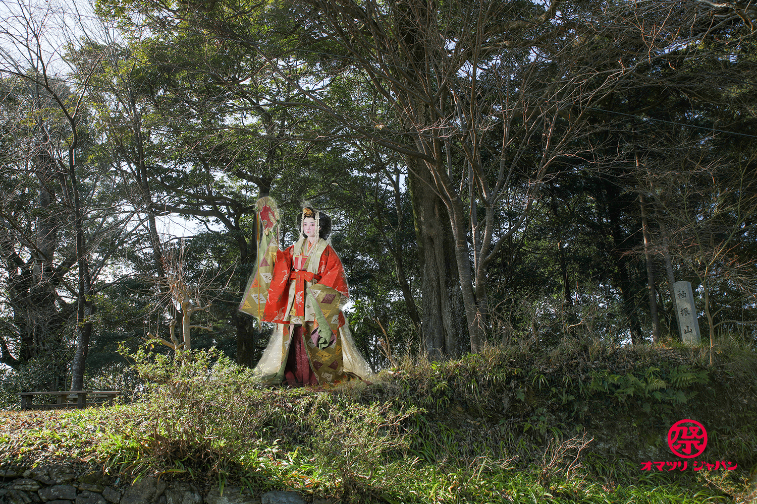 写真:袖振山に瀬織津姫が舞い降り、五節舞を舞ったというシーンを写真で合成再現