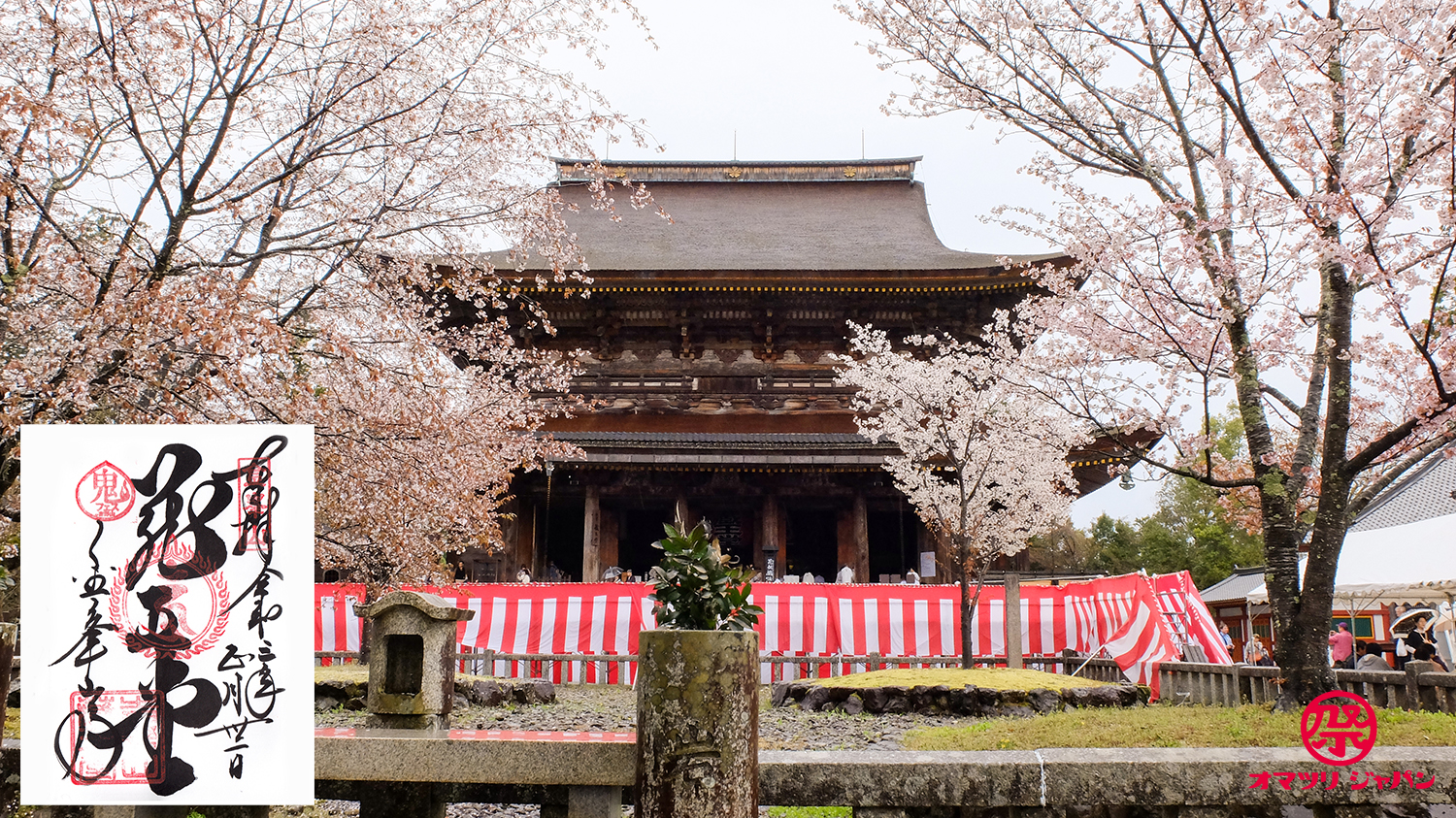 写真:桜の時期の金峯山寺 鬼フェスの期間のみ「鬼フェス」印が御朱印に押される