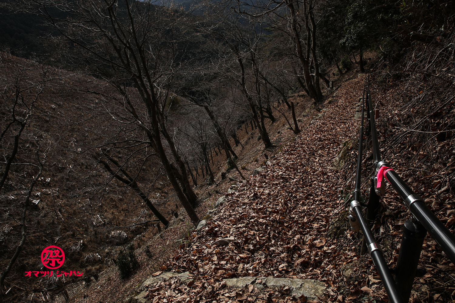 西行庵のある場所は吉野水分神社のさらに奥。金峯神社まではタクシーで来られます。そこから山の中に入り、手すりを伝って道なき道を進んで行きます。