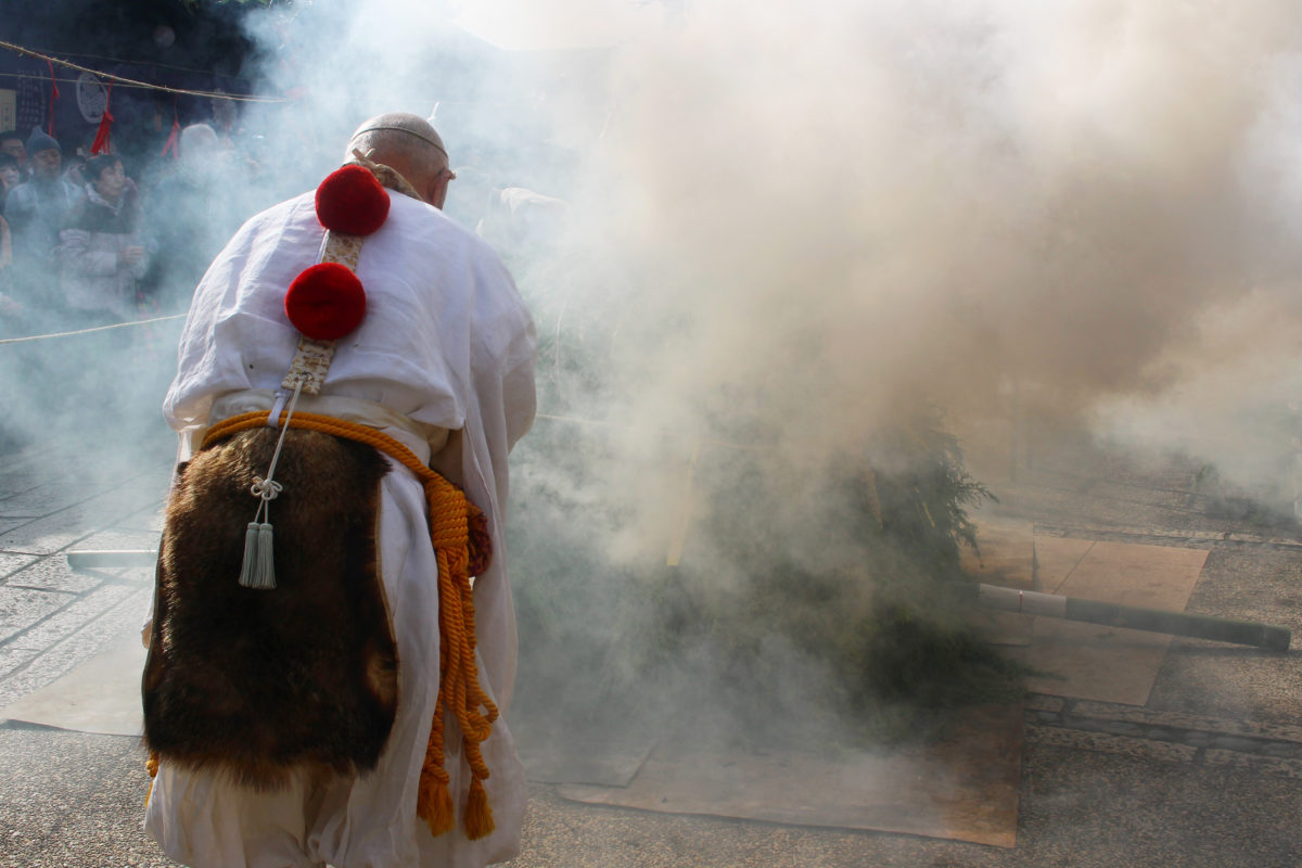 だんだんと火が広がり、境内に煙が立ち込めます。次々と山伏によってお経が唱えられ、これはすごいです!